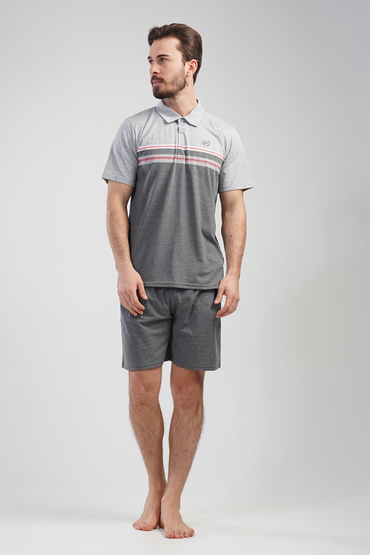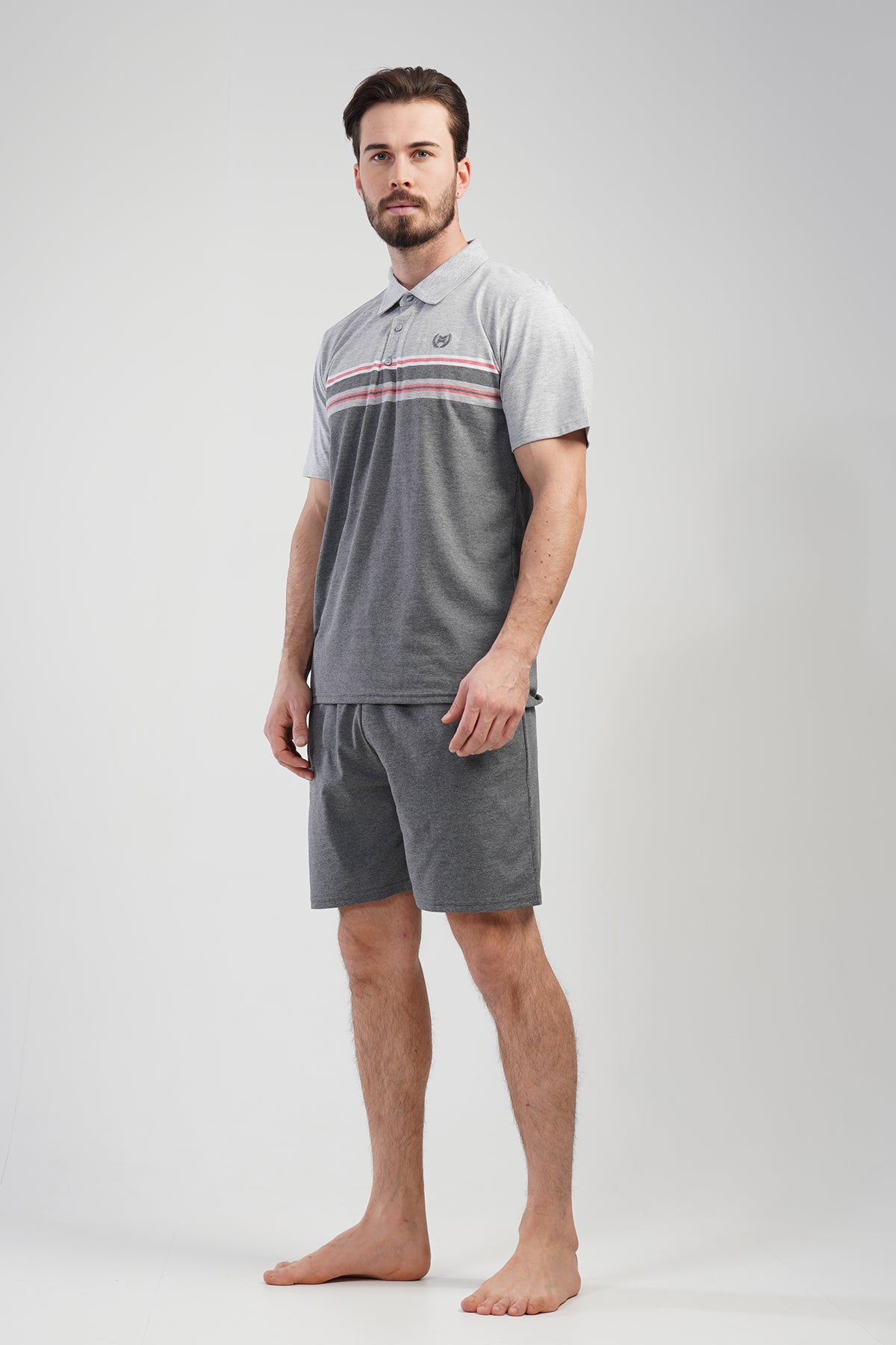 Man Supreme Polo Shirt Pocket Detail Short Sleeve Napy Short Set