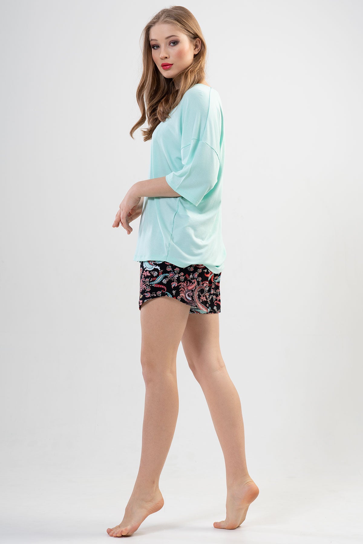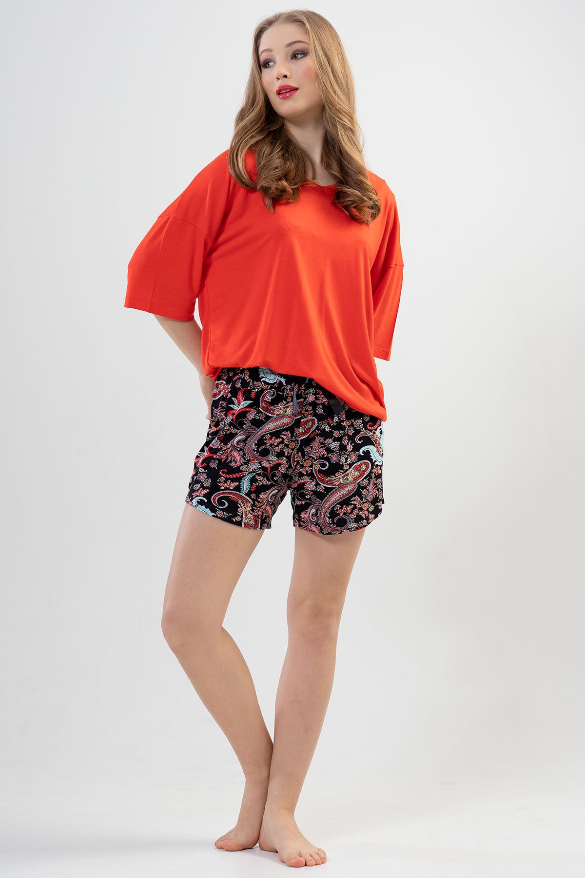 Woman Lycra Wortex Eres Viscon Low Shoulder Short Sleeve Short Set