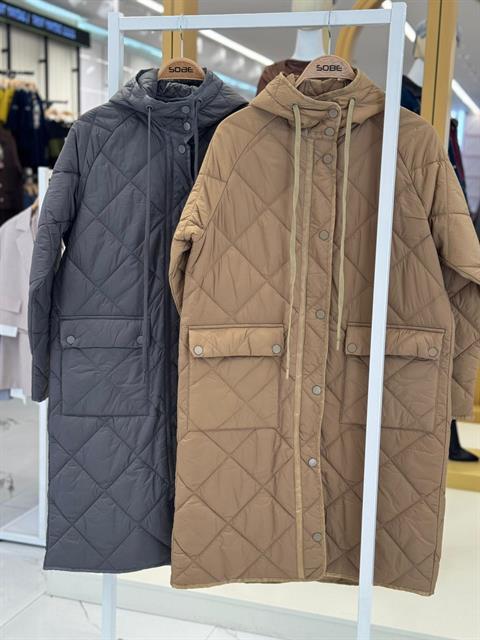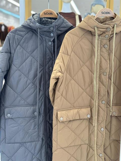 Fermuar ve Kapşonlu Uzun Kapitone Mont 7062