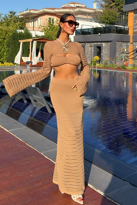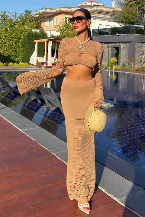 Büstiyer ve Bolerolu Ajur Üçlü Takım 10087