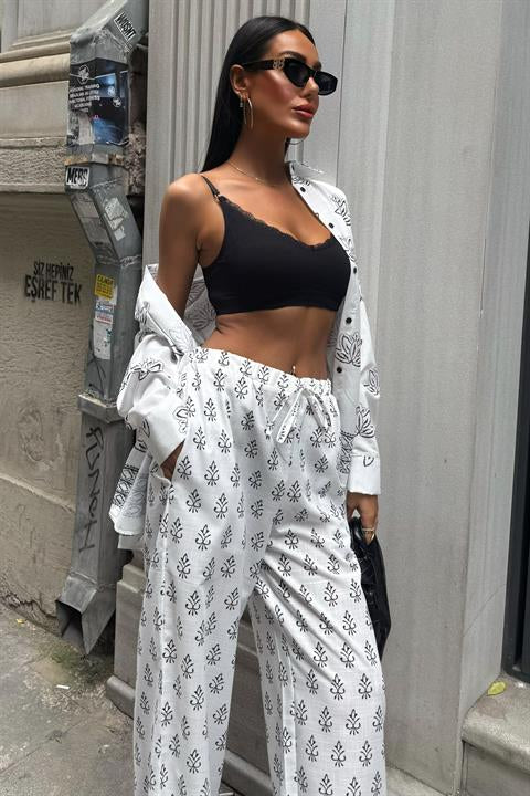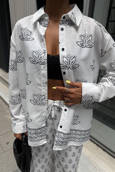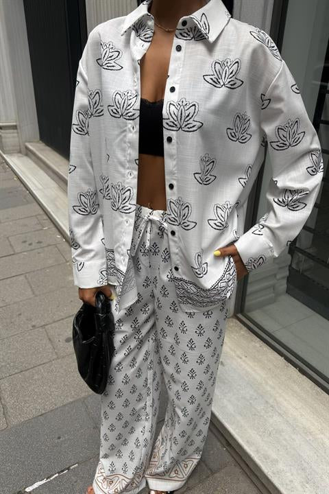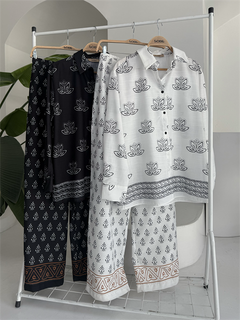Etnik Desenli İkili Keten Takım 10120