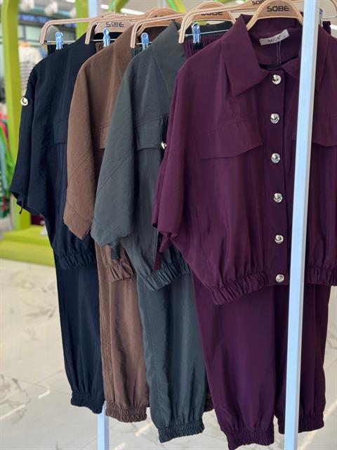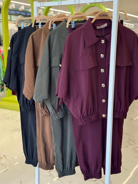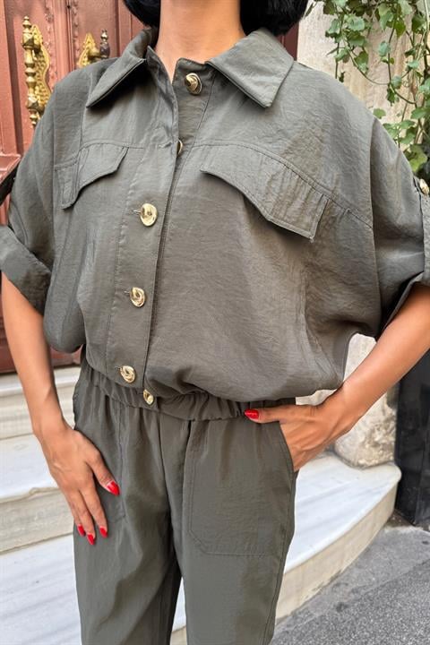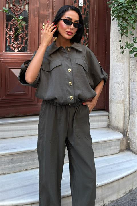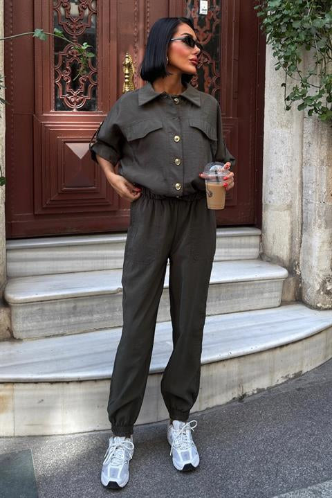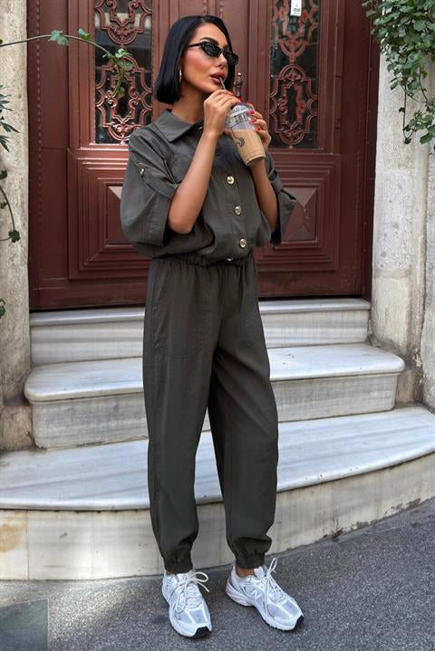 Gold Düğme Detaylı Lastikli Rahat Takım 10243