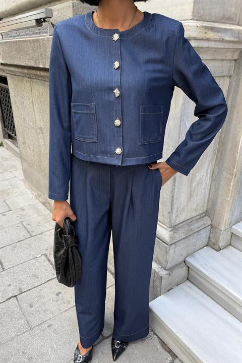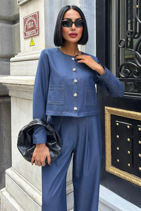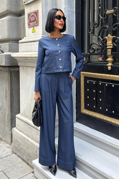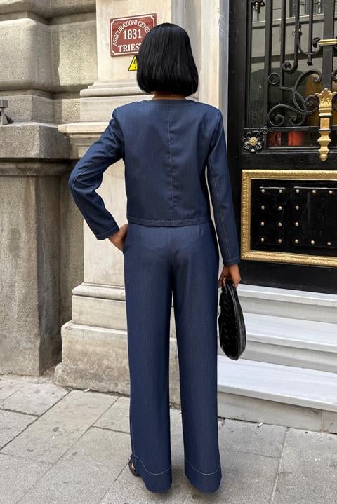 Dikiş Detaylı ve Palazzo Pantolonlu Nikol Takım 10237