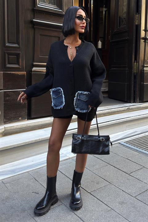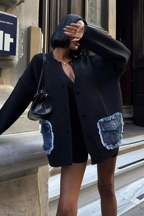 Blanc Denim Detaylı Triko Hırka 5187