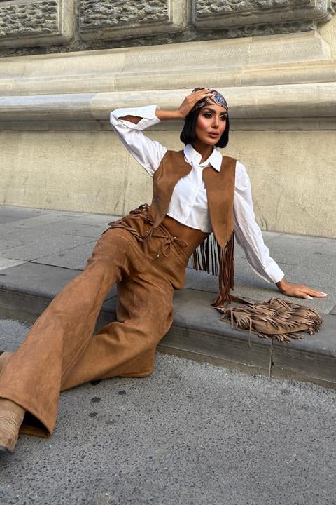 Yeleği Püsküllü Süet Takım 10273