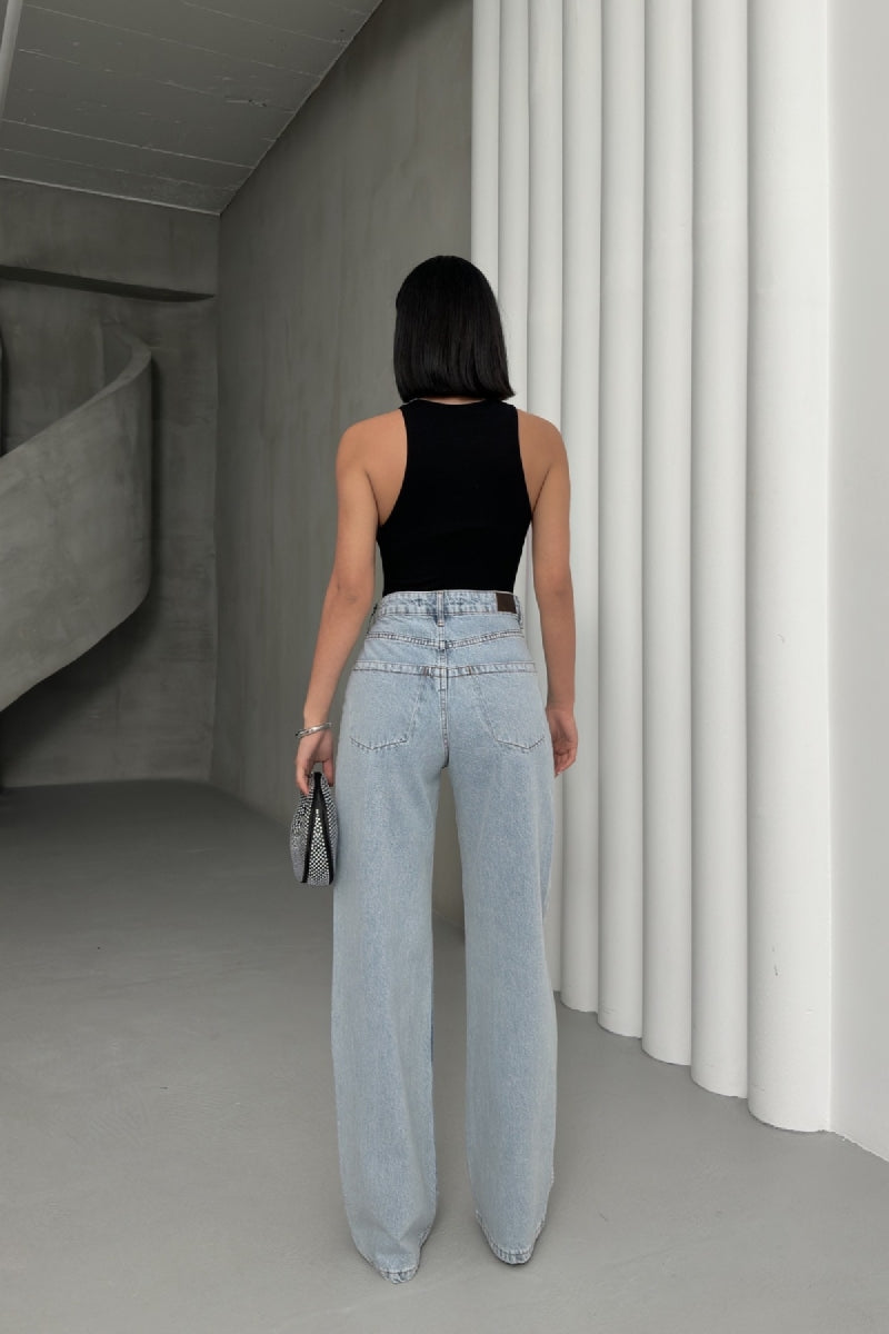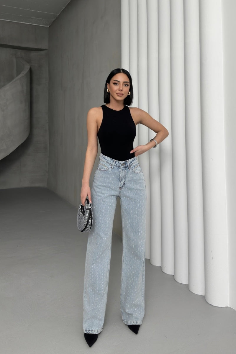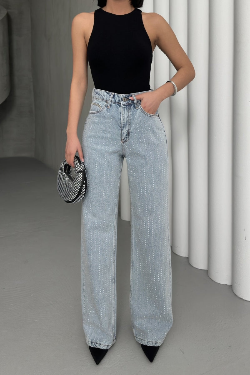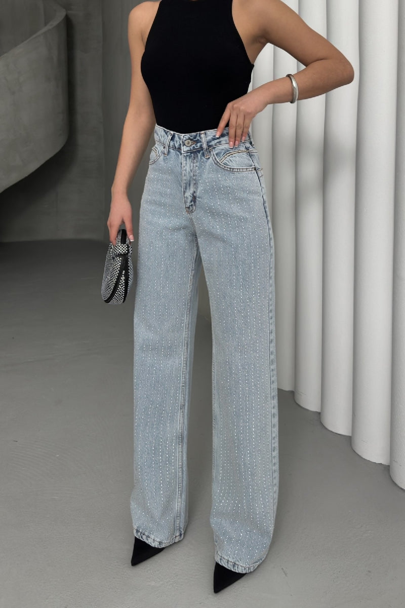 Taşlı Gizli Arka Cep Detaylı Palazzo Jean
