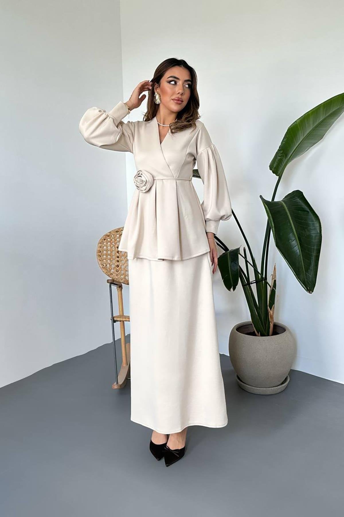 Toptan Bej Gül Detaylı TakımKUMAŞ İÇERİĞİ%93 Polyester %7 ElastanMODEL ÖLÇÜLERİBoyKiloKol UzunluğuGöğüsBelKalça163 cm51 kg56 cm84 cm63 cm96 cmMankenin üzerindeki numune S/36 bedendirÜrünlerimizin bedenleri Avrupa beden standartlarındadırEtiketi sökülmüş ve kullanım hatası olan ürünlerden firmamız sorumlu değildir.KURU TEMİZLEME YAPINIZ