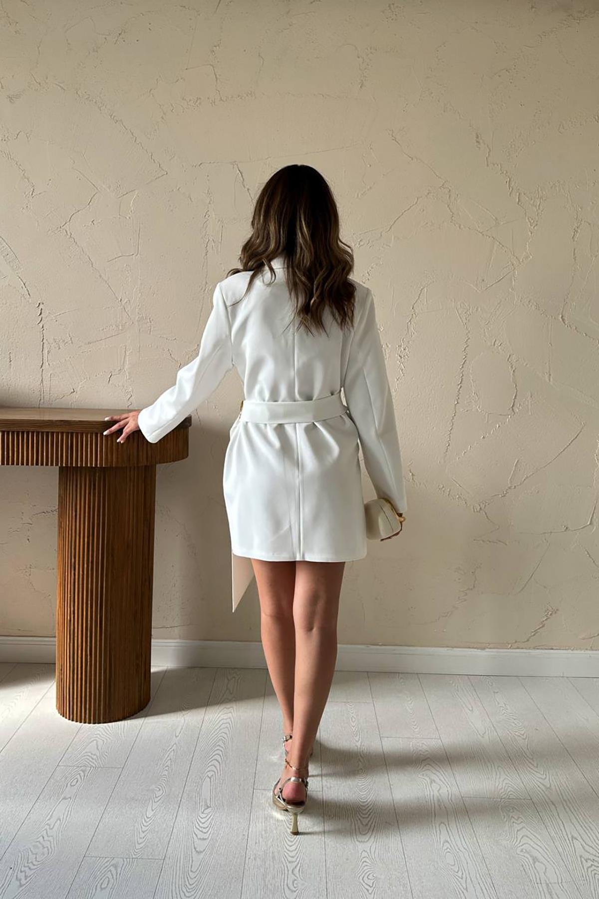 Toptan Ekru Yandan Tokalı Ceket Elbise