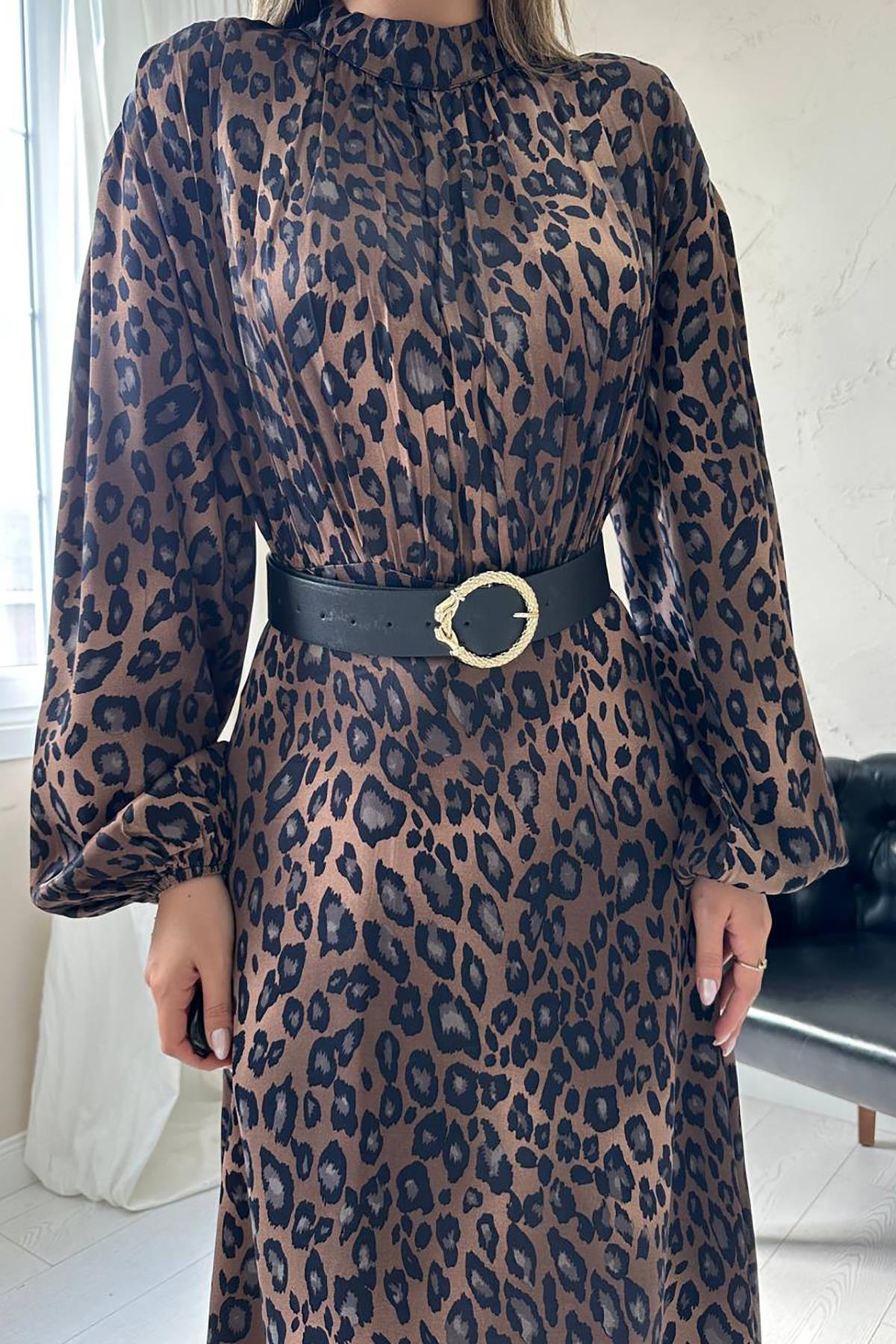 Toptan Leopar Saten Elbise