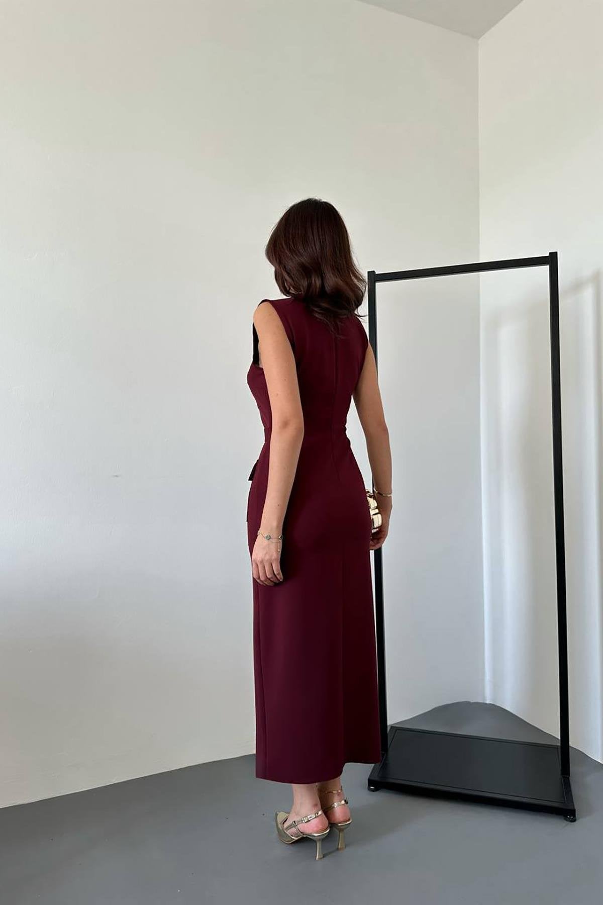 Toptan Bordo Önden Lastik Tokalı Elbise