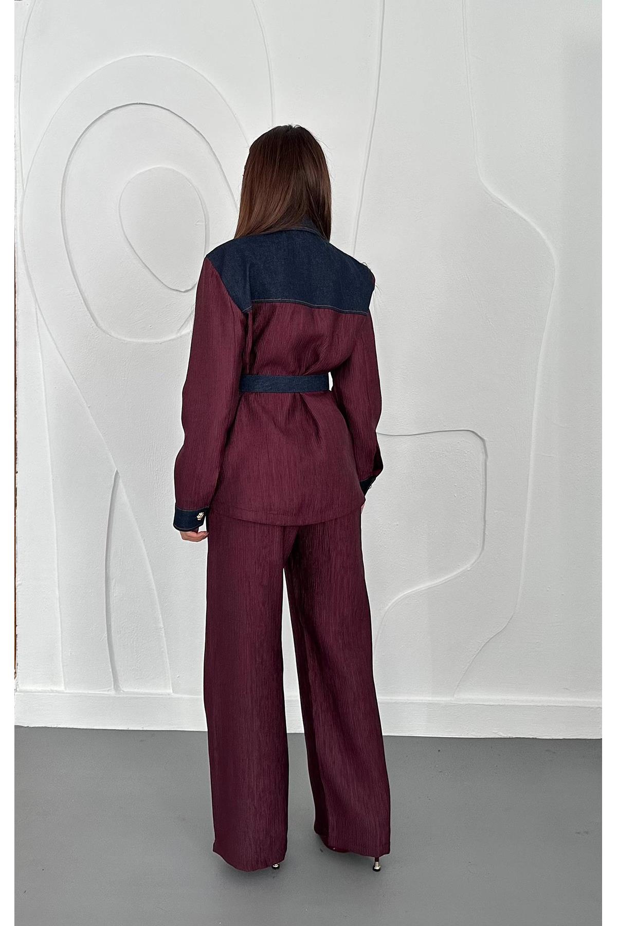 Toptan Bordo Garnili Cepli Gömlek Ve Pantolon Takım