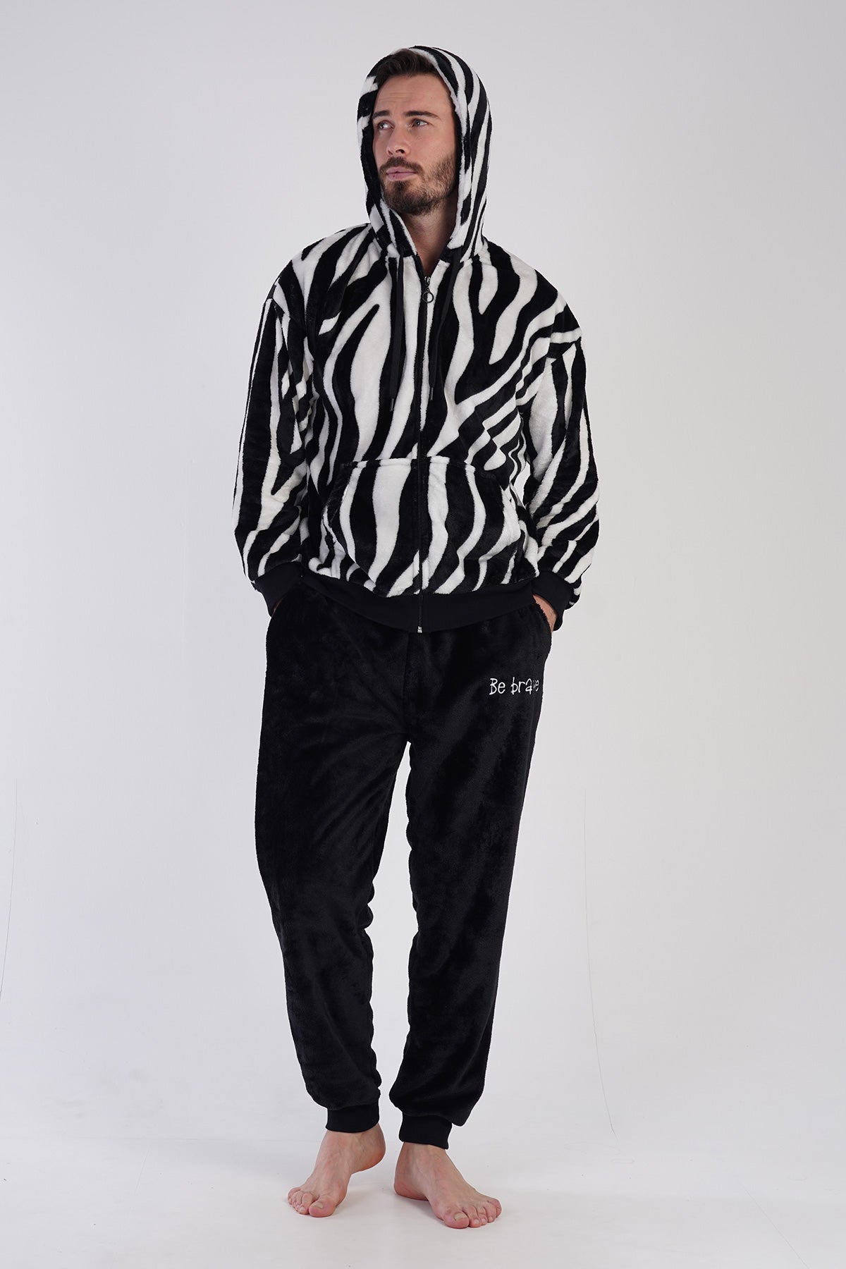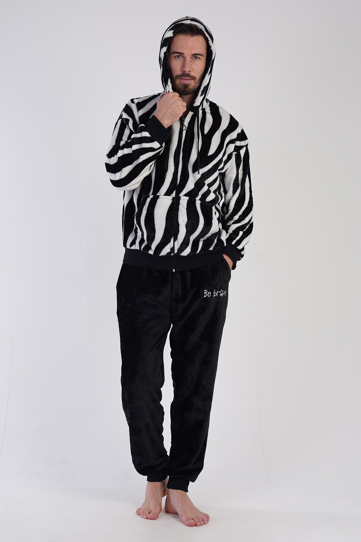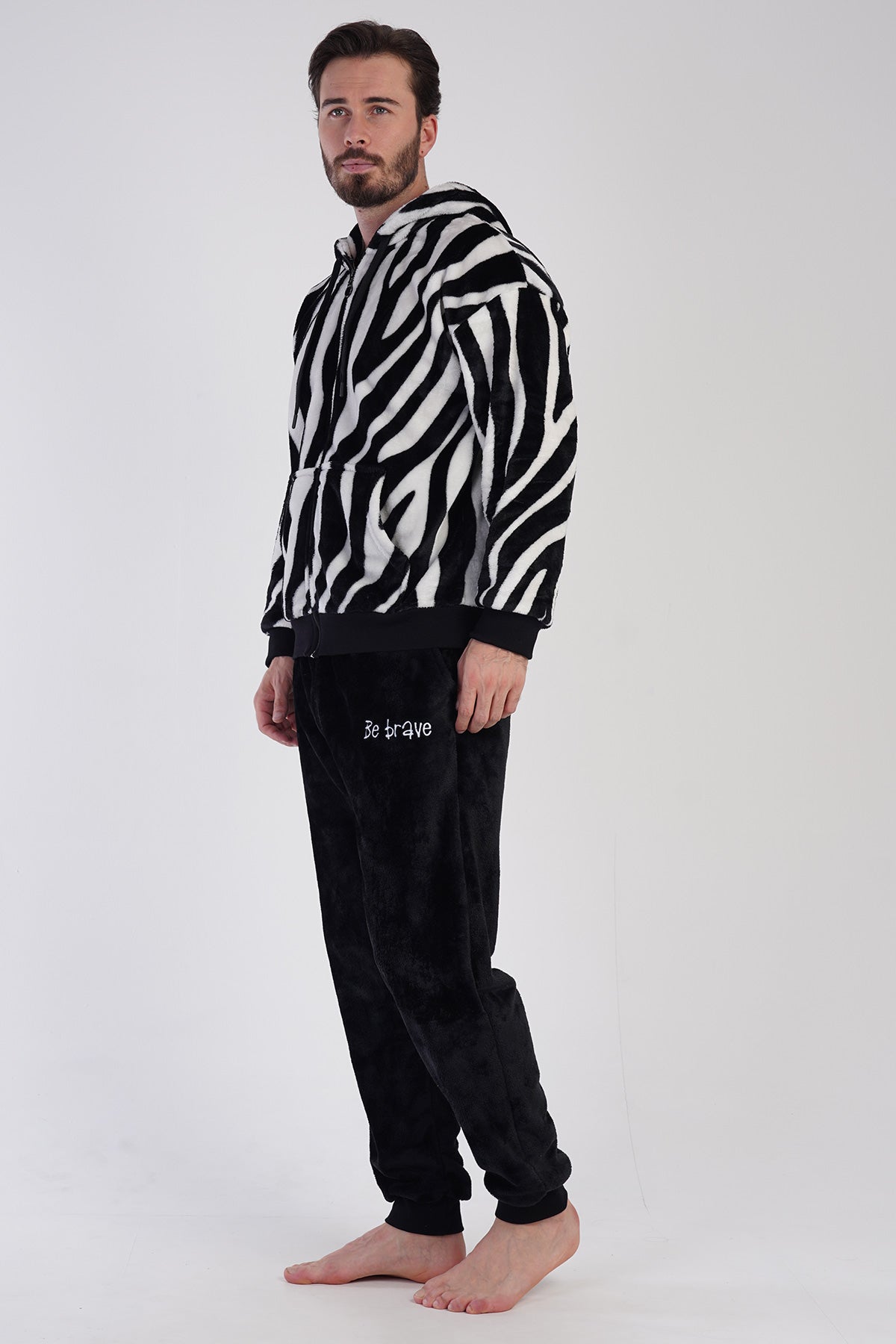 CEPLI ERKEK SOFT KAPSONLU DUSUK OMUZLU UZUN KOL FERMUARLI MANSETLI CEPLI PIJAMA TAKIM