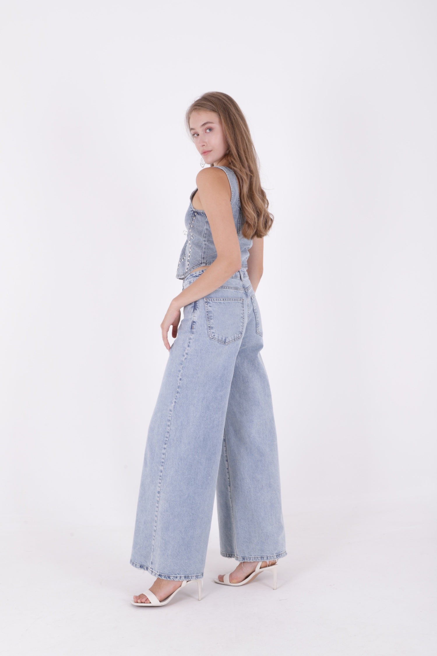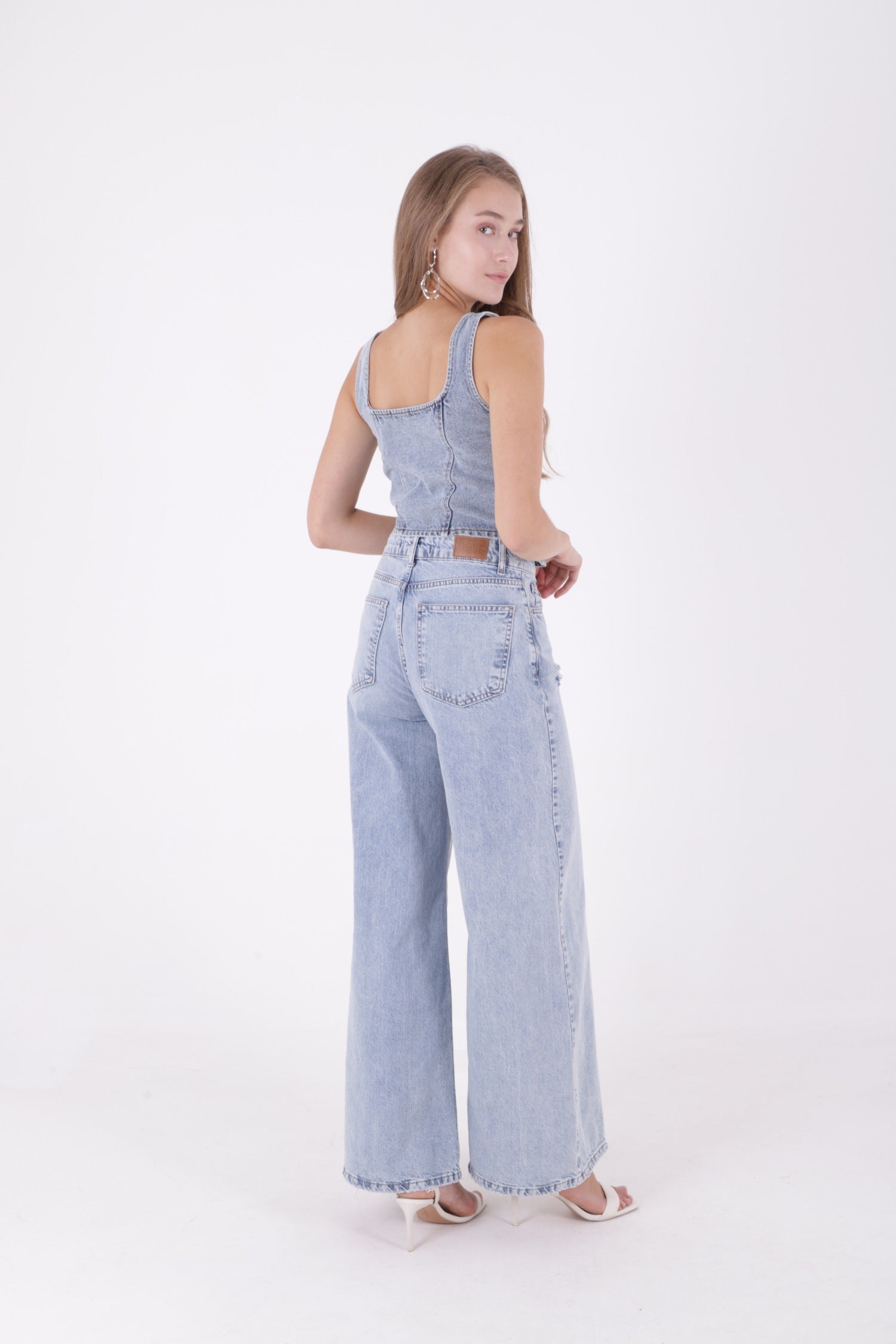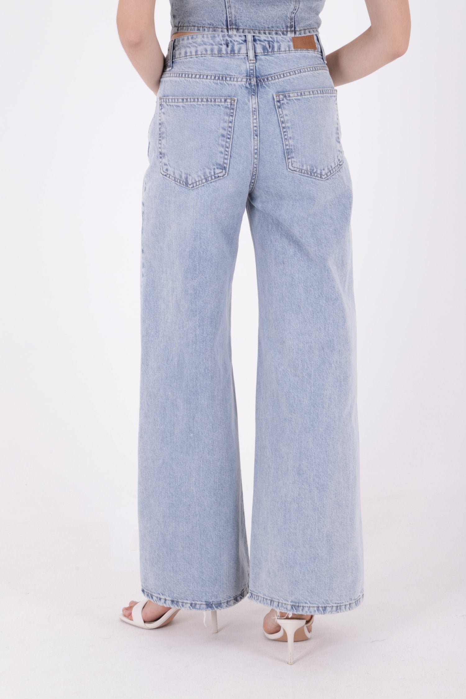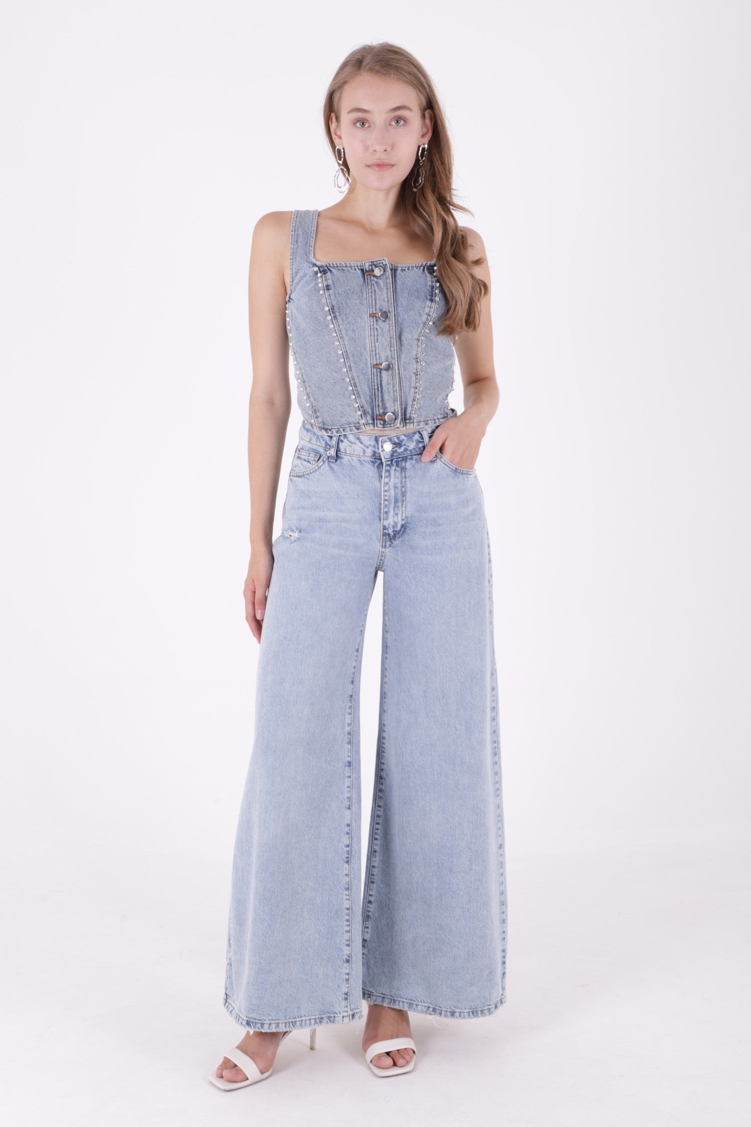 Geniş Saçaklı Paça Peçli Kot Pantolon