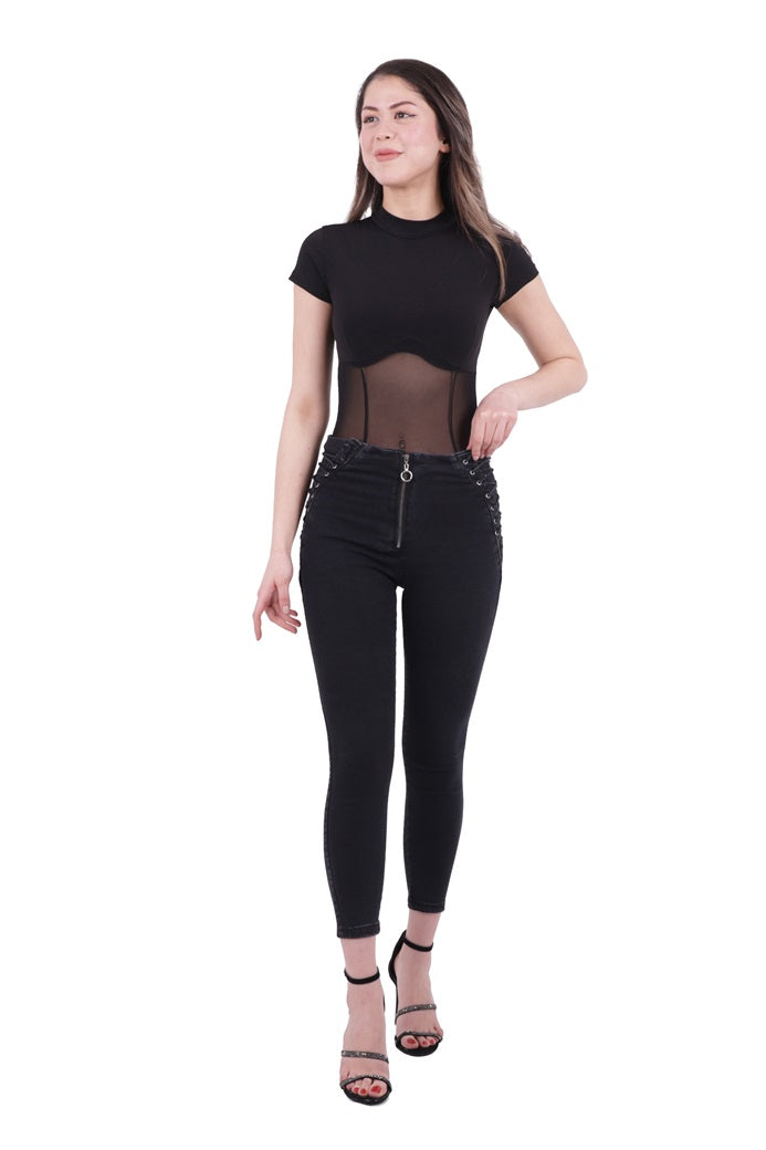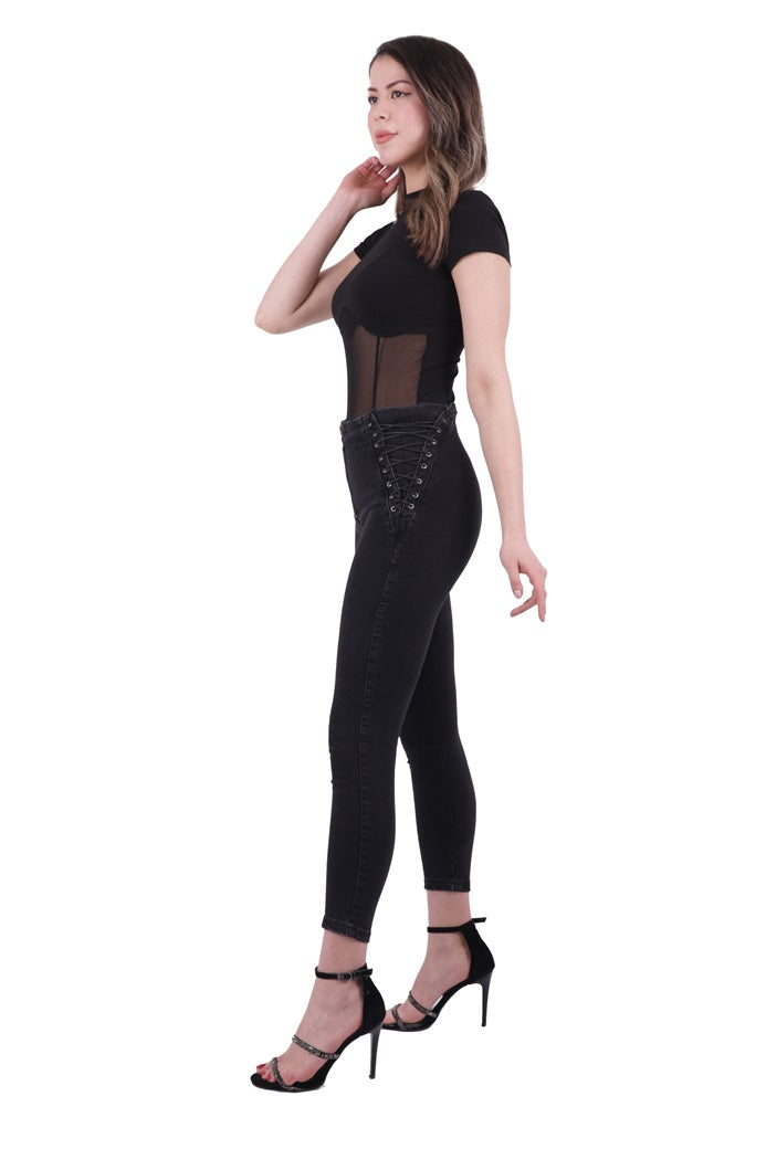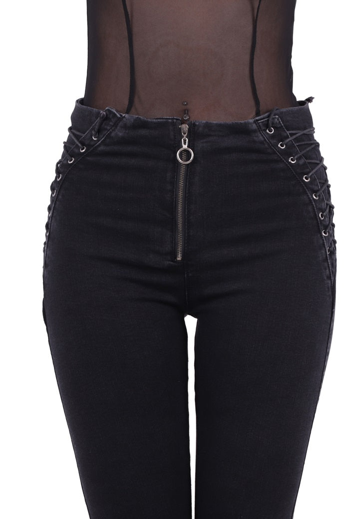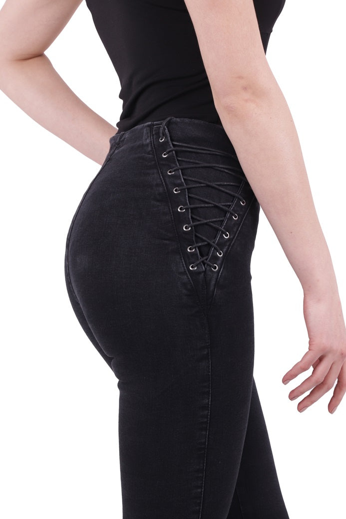 Yanı Bağcıklı Kot Pantolon