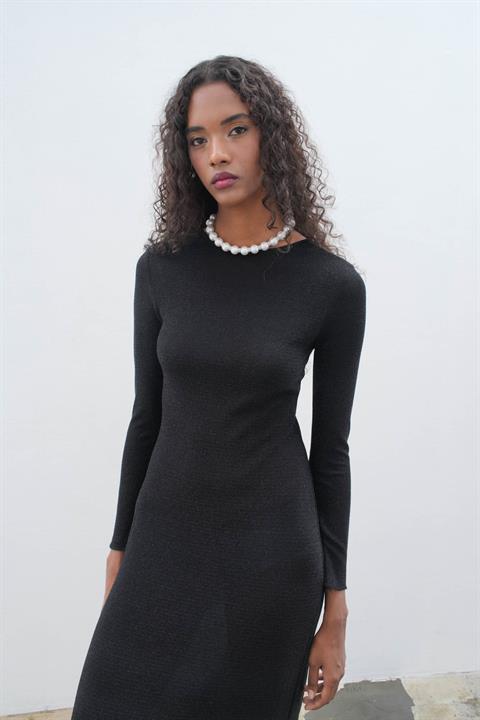 Perla Maxi Uzun Kol Sırt Dekolte Elbise 2815