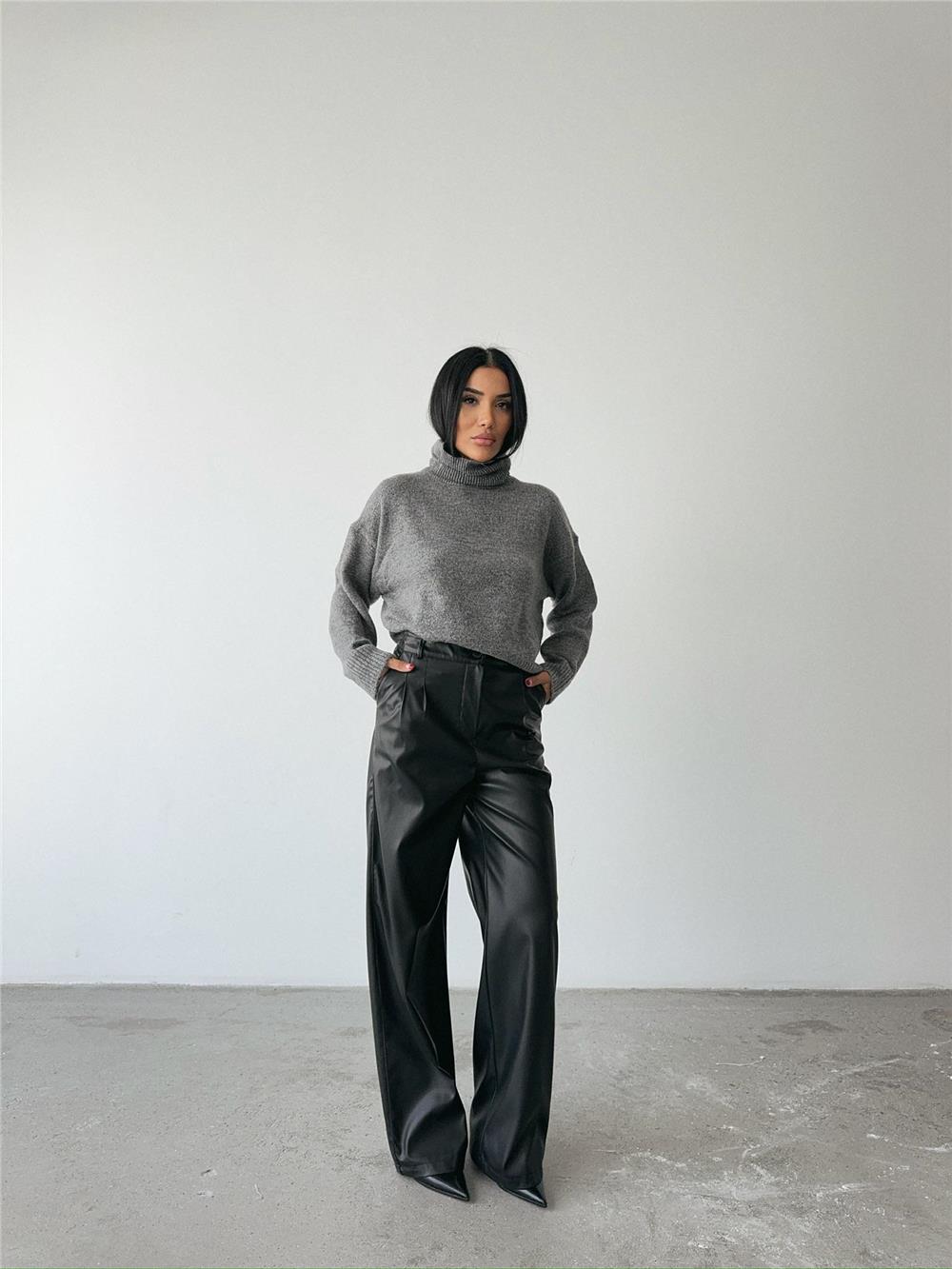DERİ PALAZZO PANTOLON BORU PAÇA - Siyah