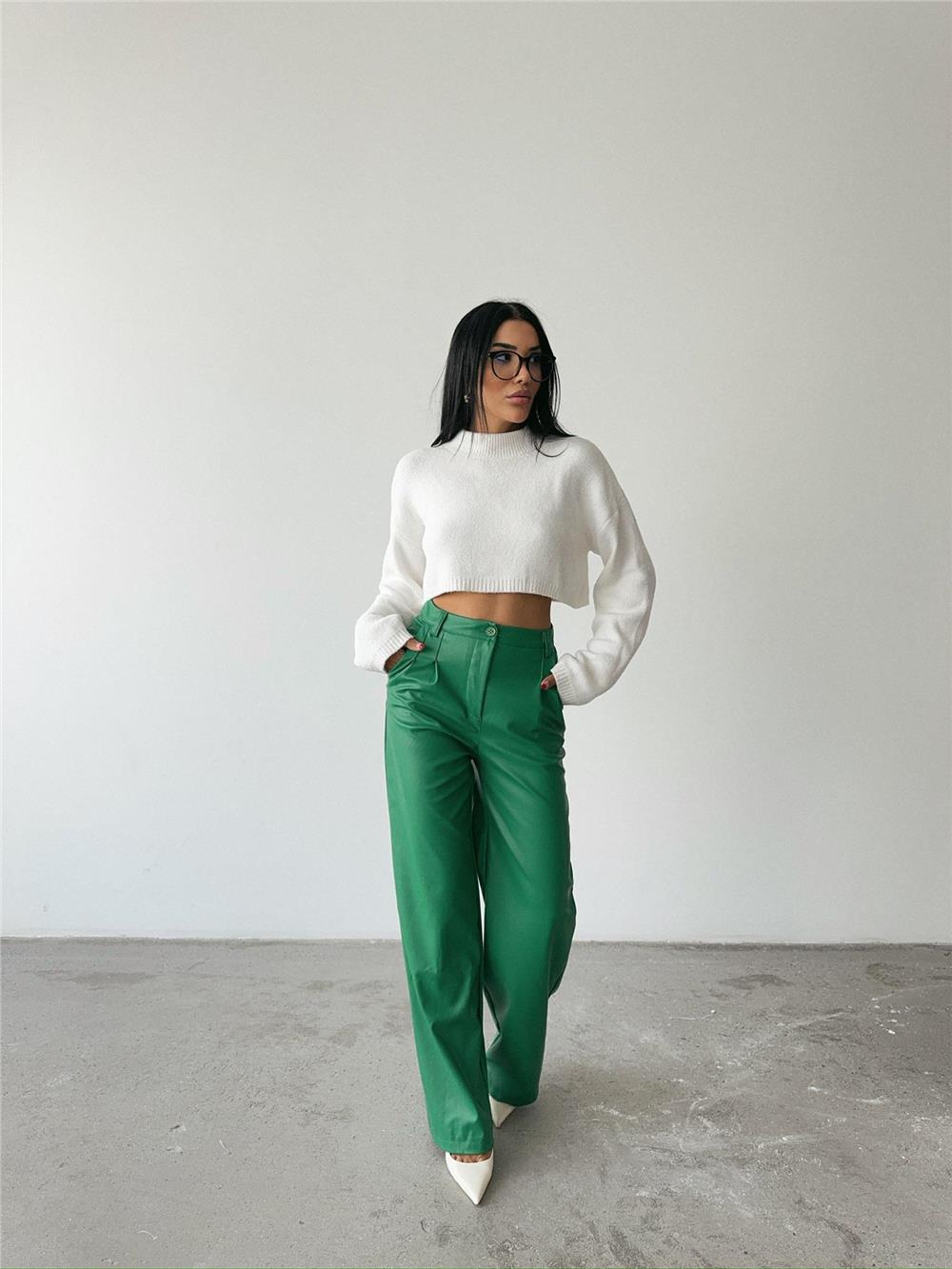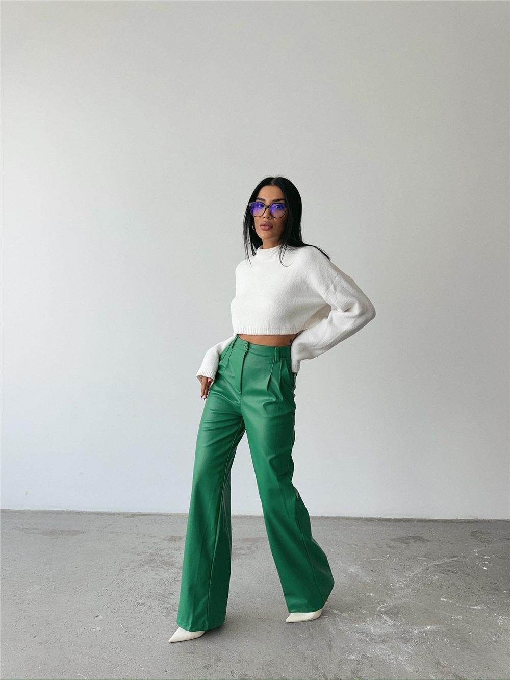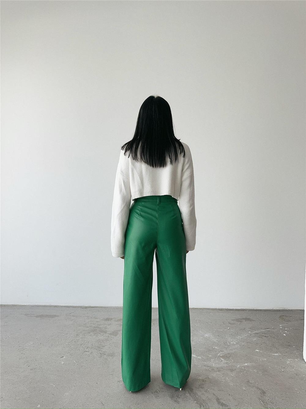 DERİ PALAZZO PANTOLON BORU PAÇA - Yeşil