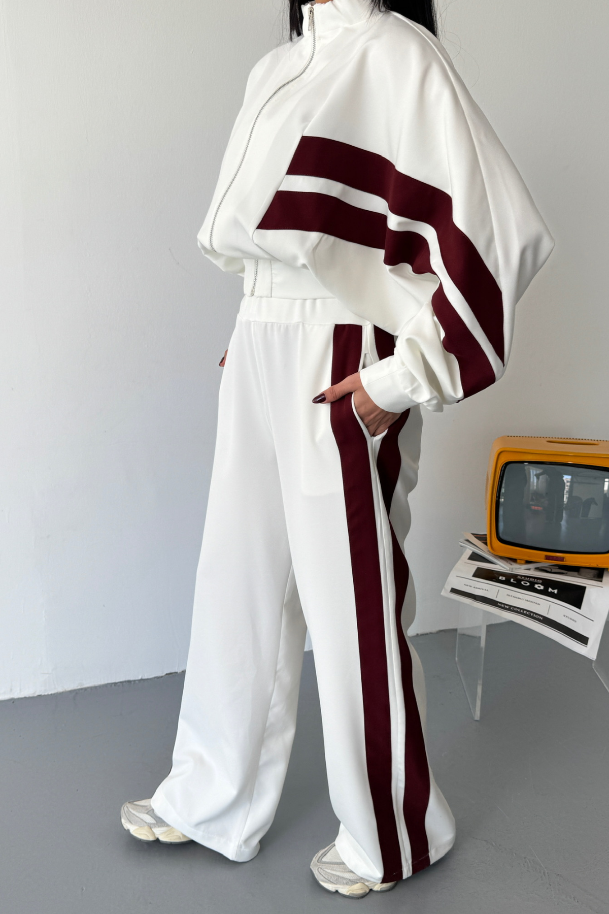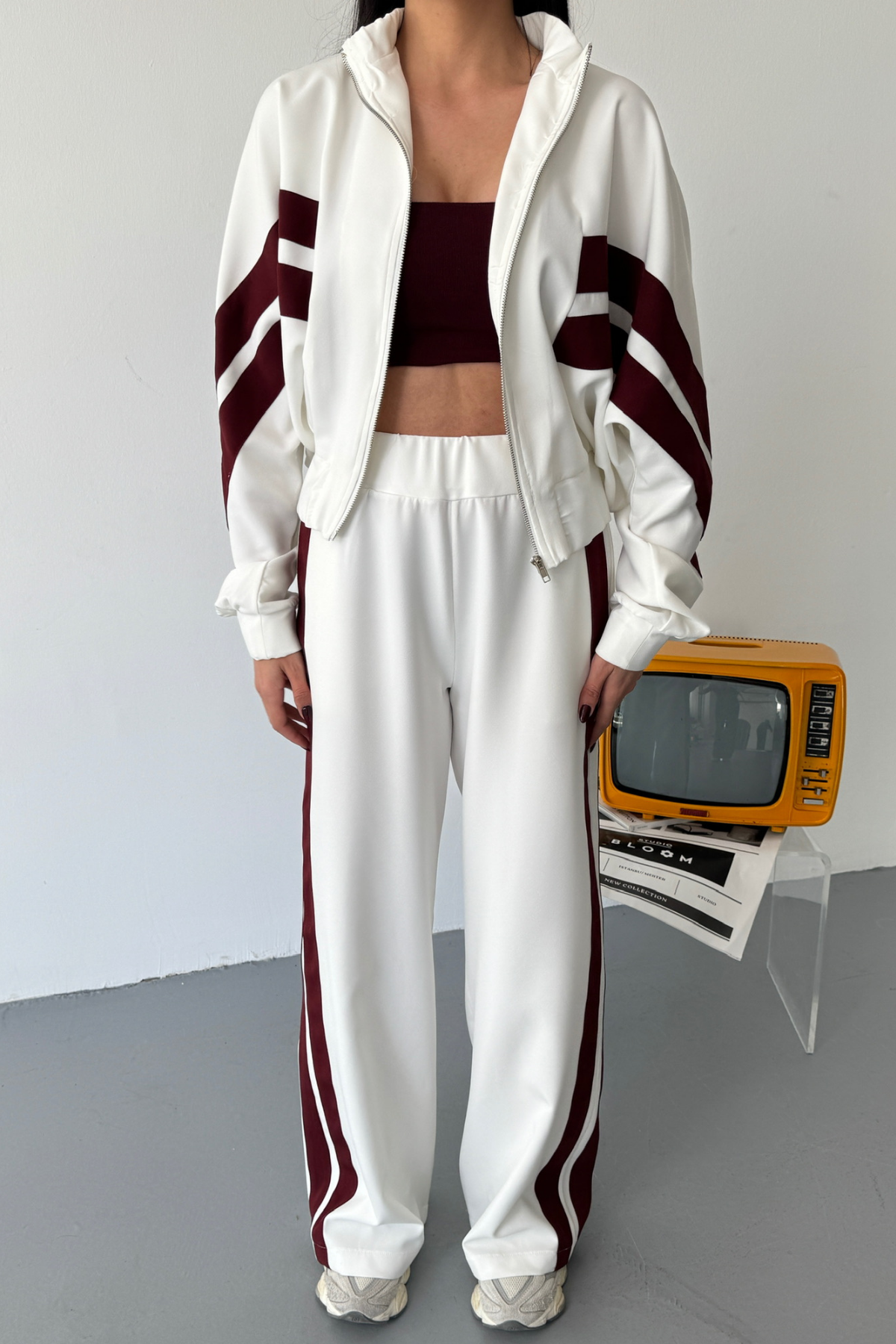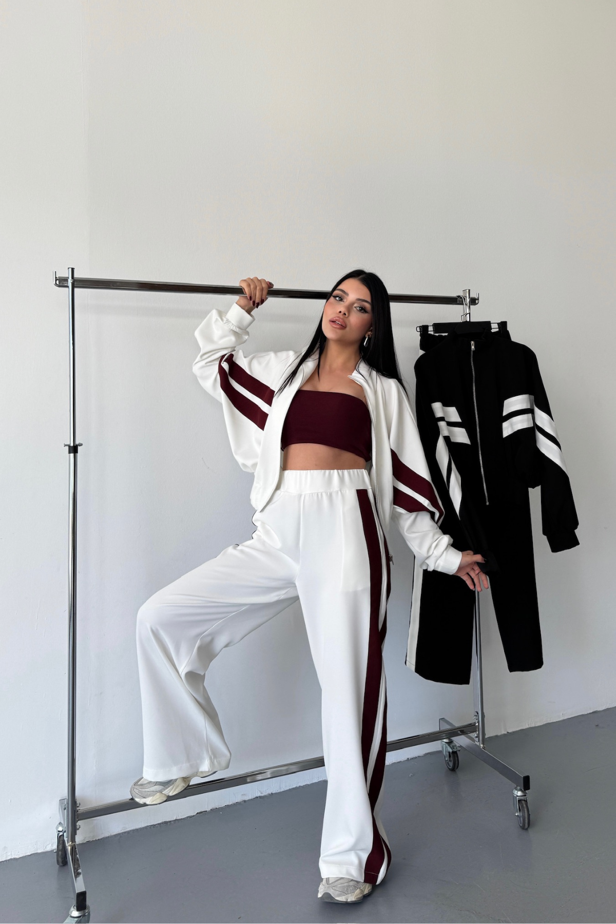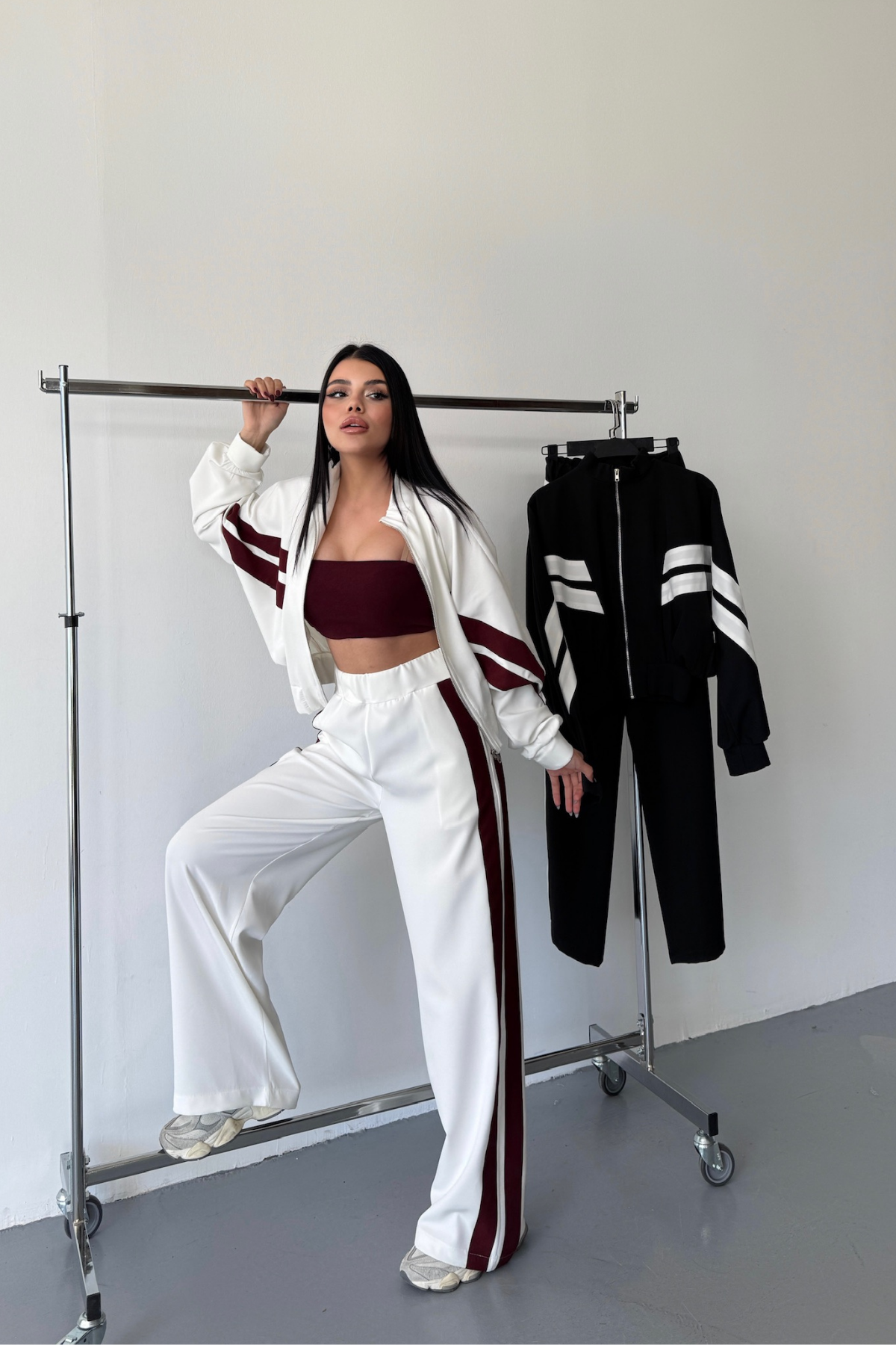 YANLAR KALIN SİYAH ŞERİTLİ EŞOFMAN TAKIM - Beyaz