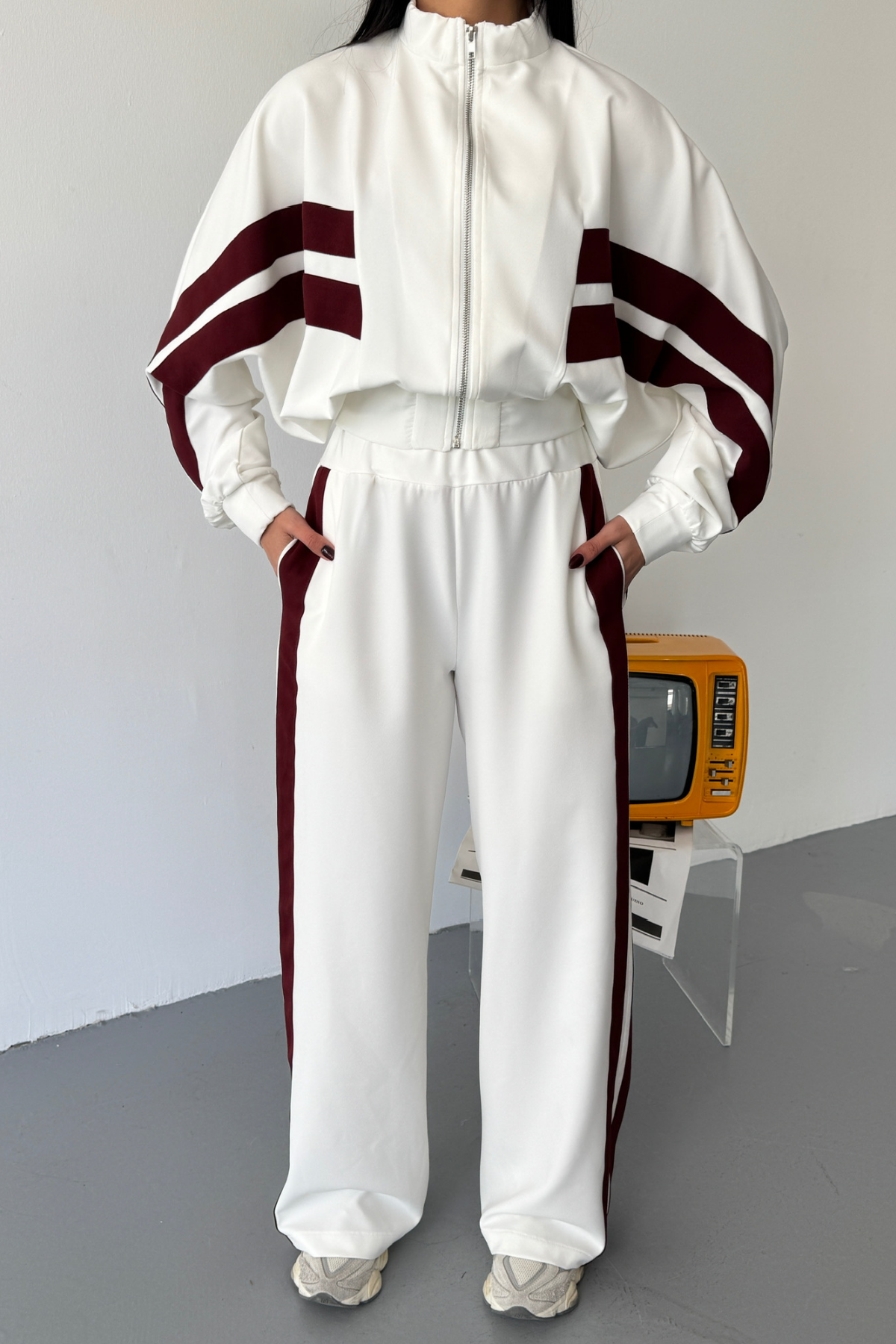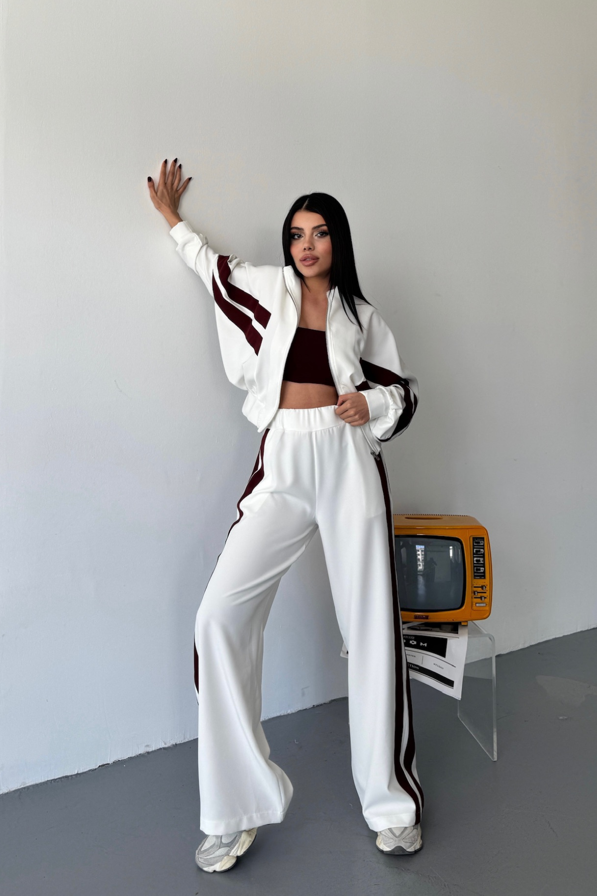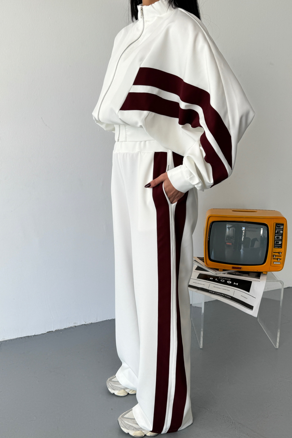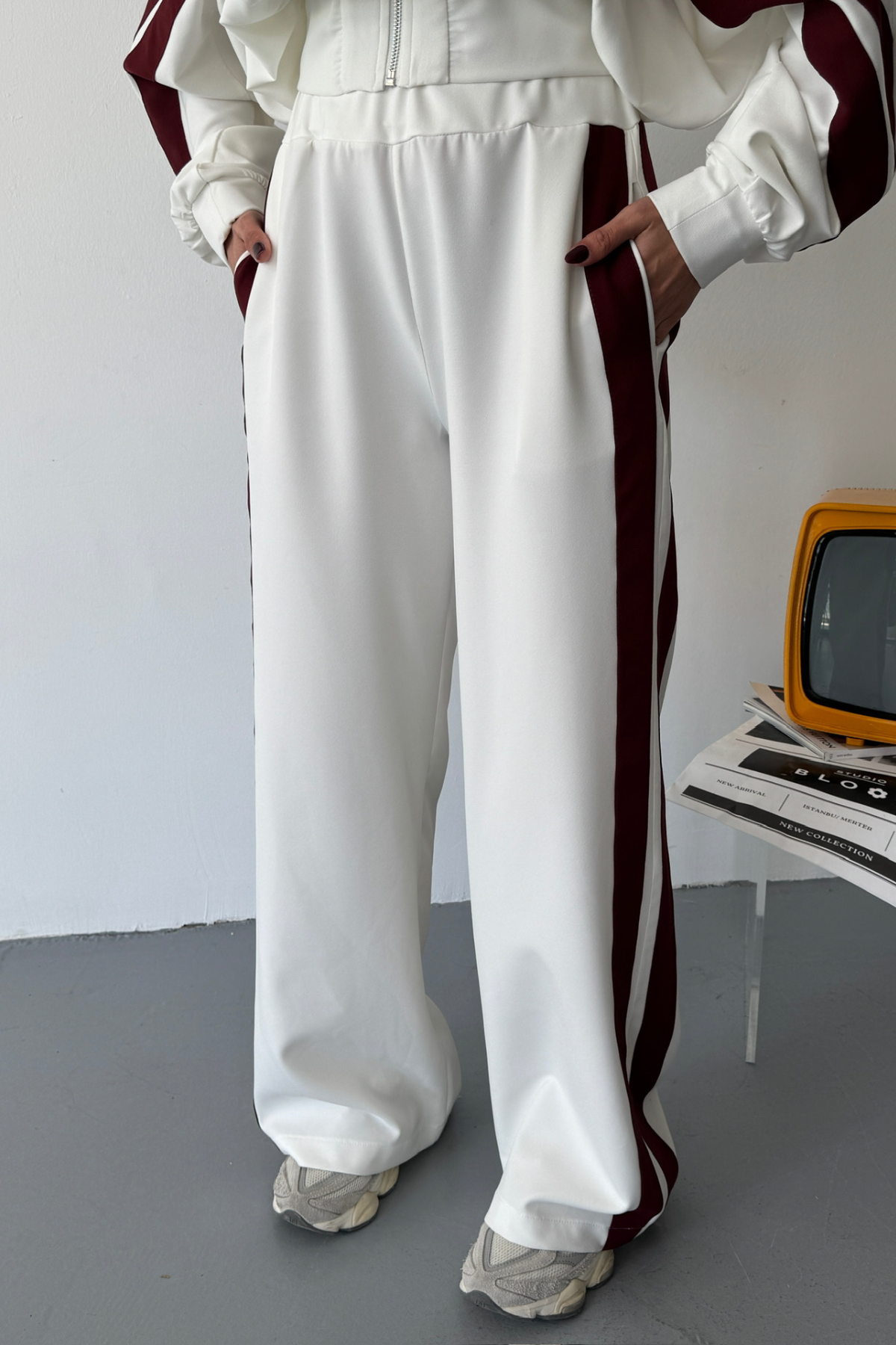 YANLAR KALIN SİYAH ŞERİTLİ EŞOFMAN TAKIM - Beyaz
