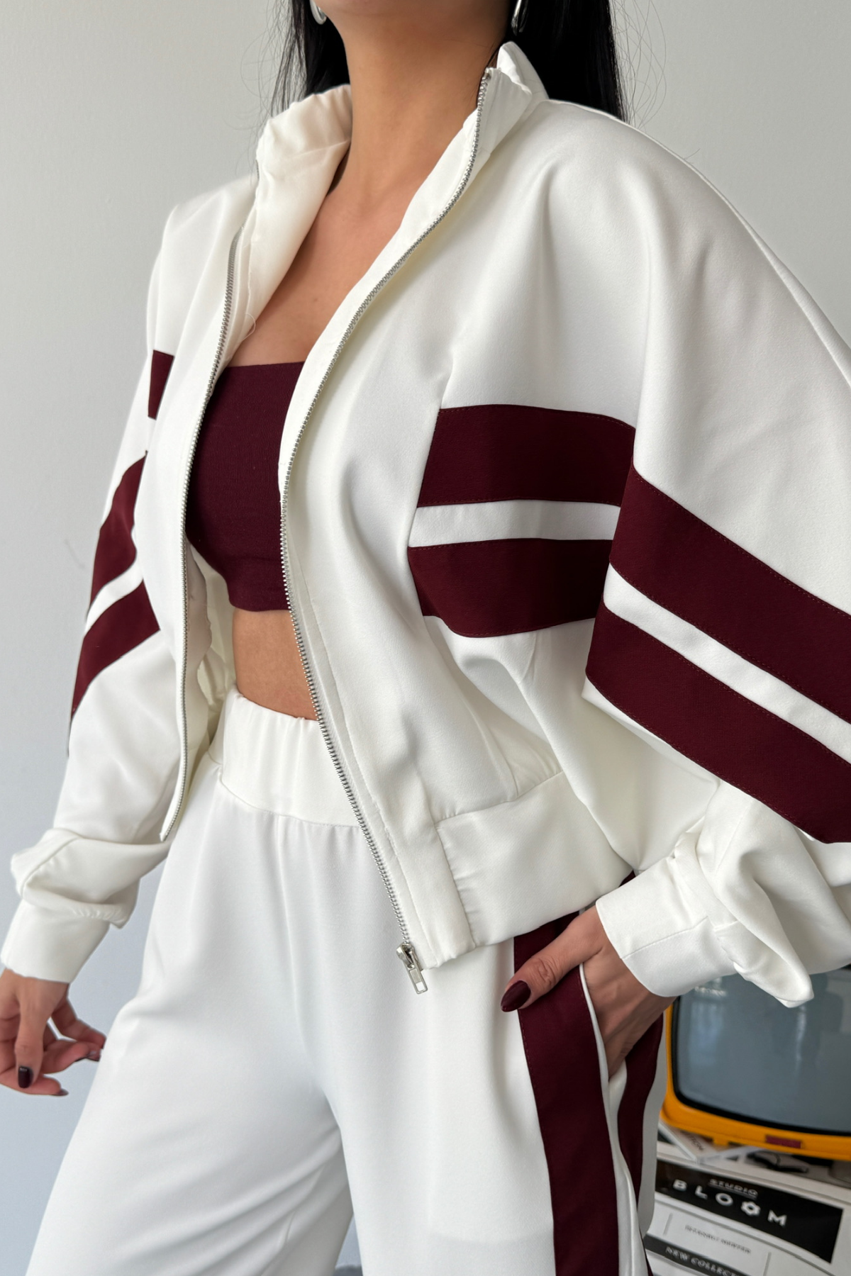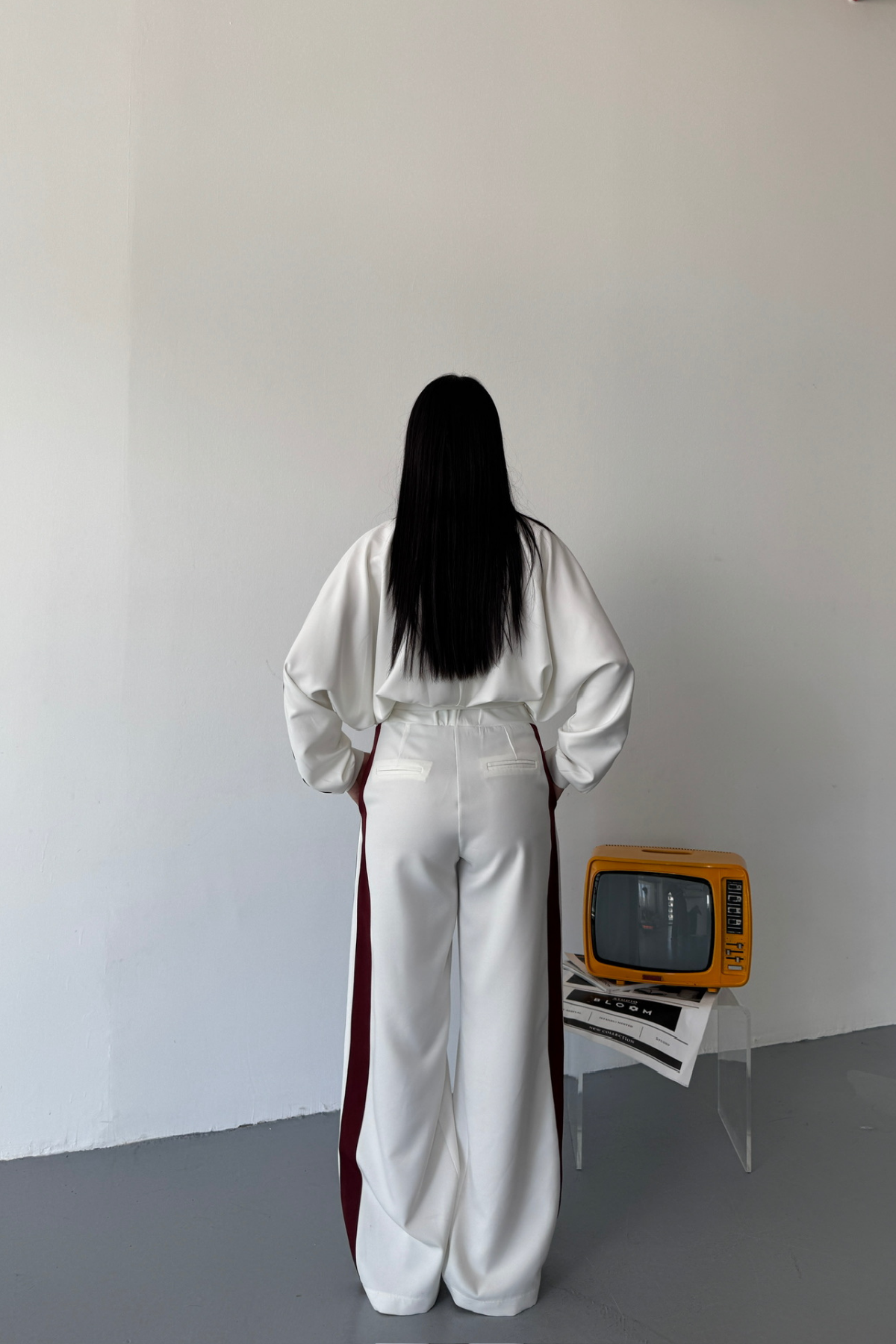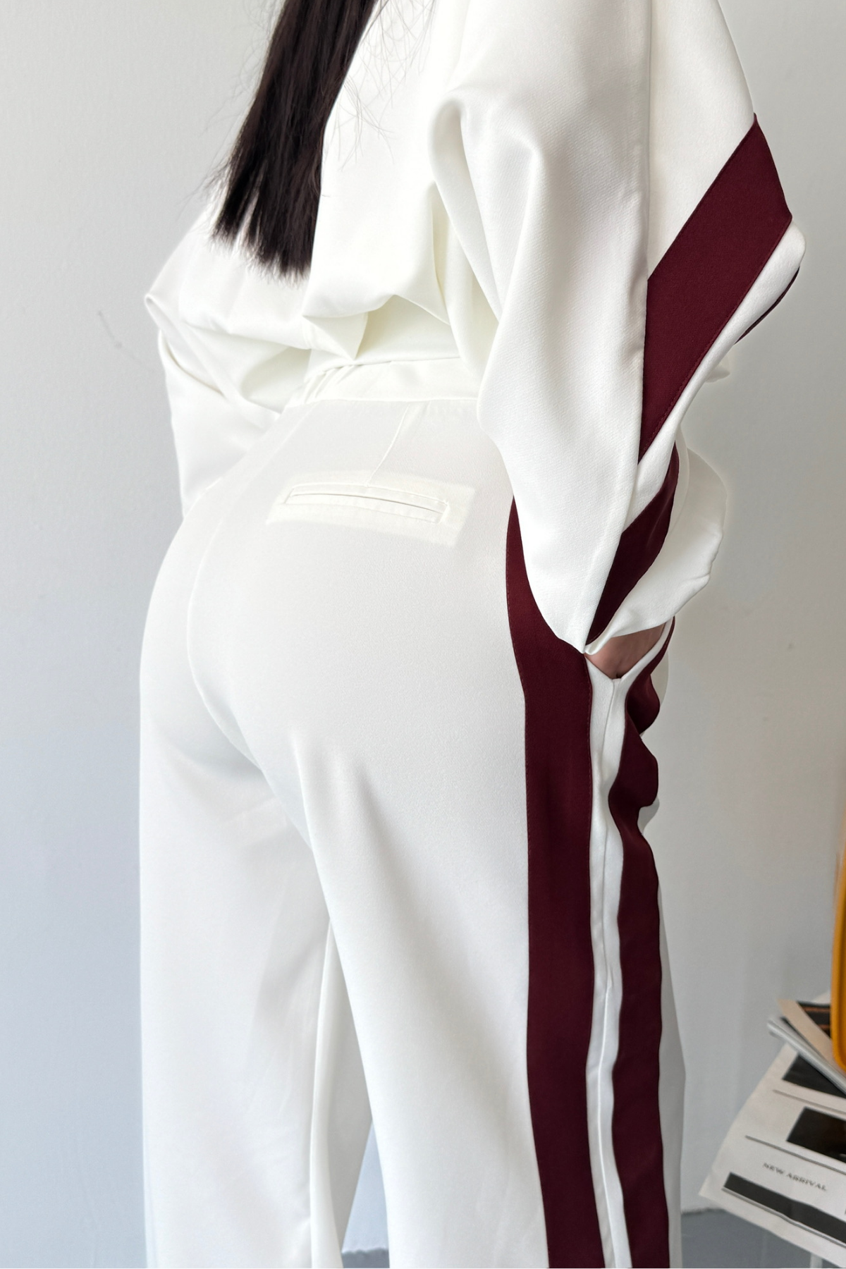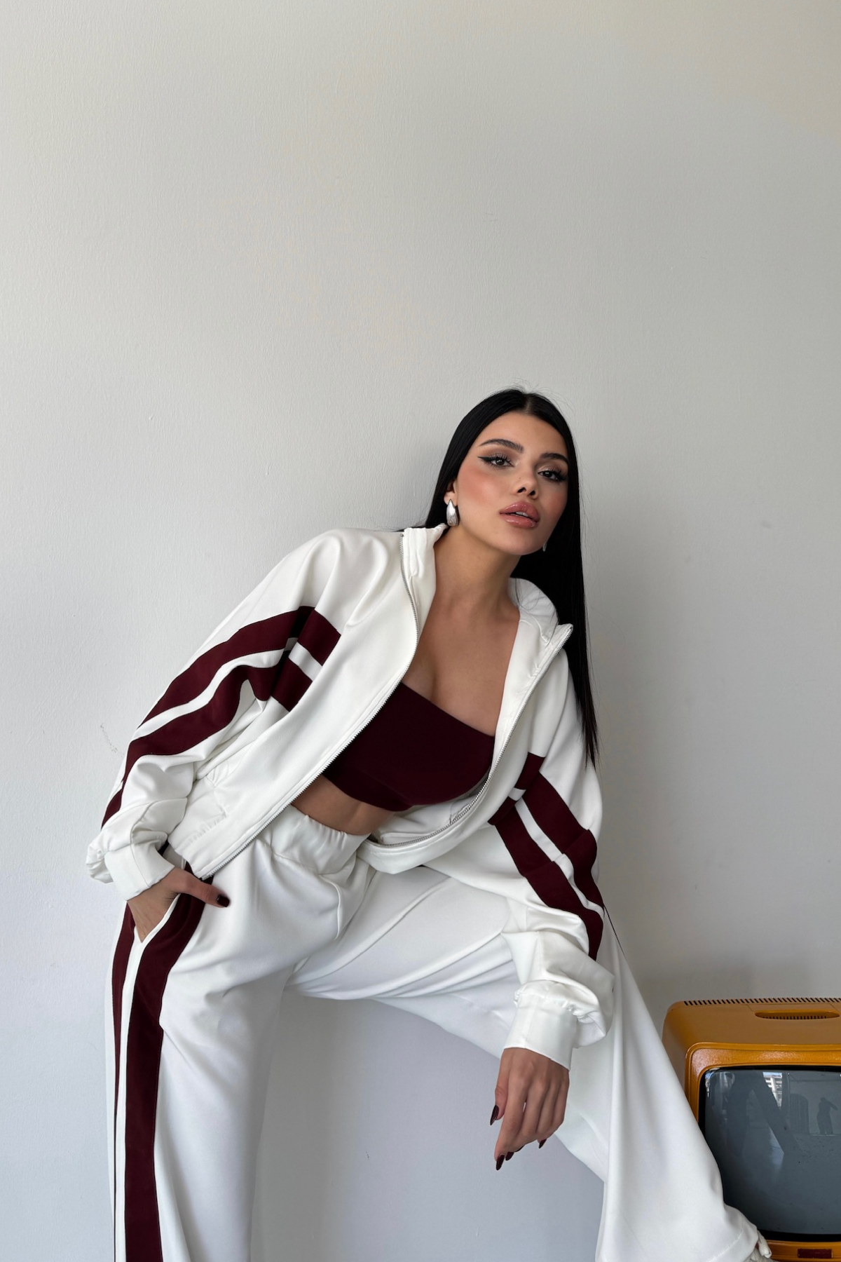 YANLAR KALIN SİYAH ŞERİTLİ EŞOFMAN TAKIM - Beyaz
