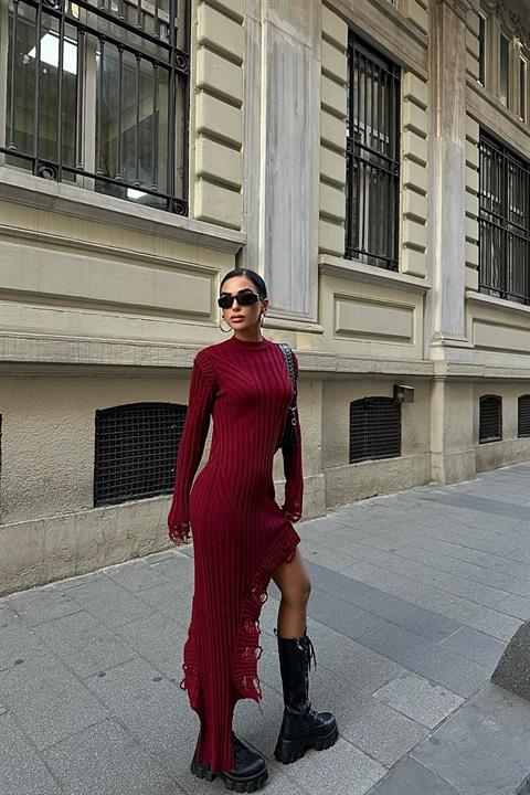 Asimetrik Detaylı Fitilli Triko Elbise 2824