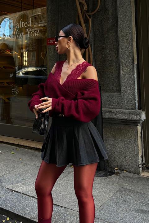 Dantel Detaylı Kruvaze Triko Kazak 1360