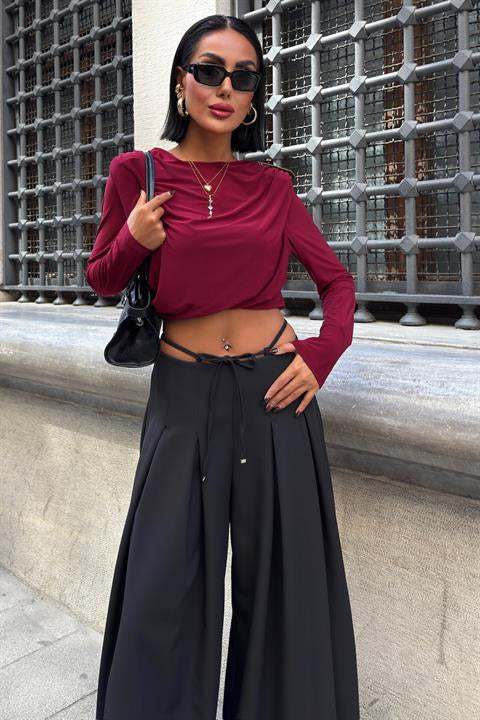 Bel Bağlama Detaylı Pileli Salaş Pantolon 0084