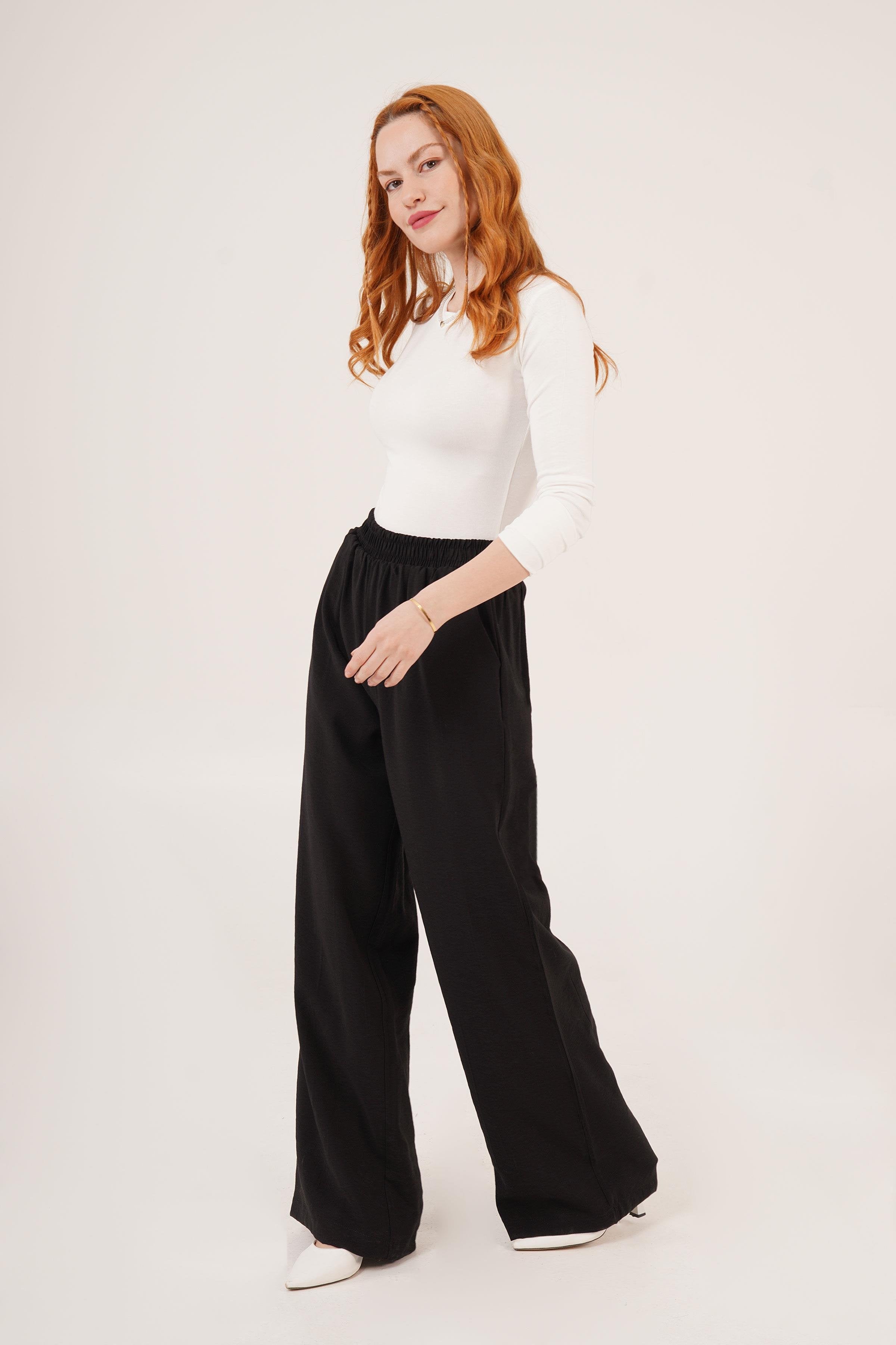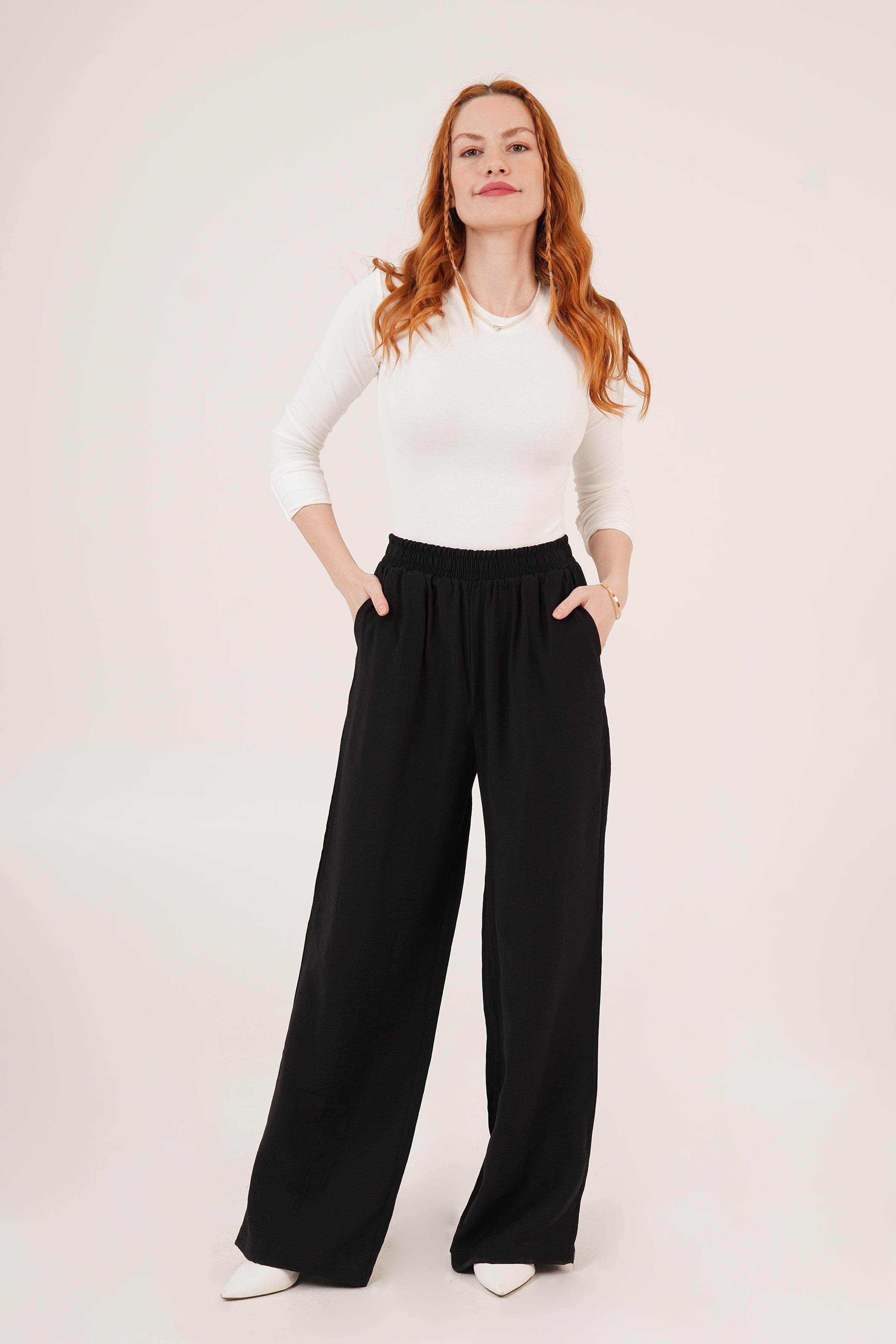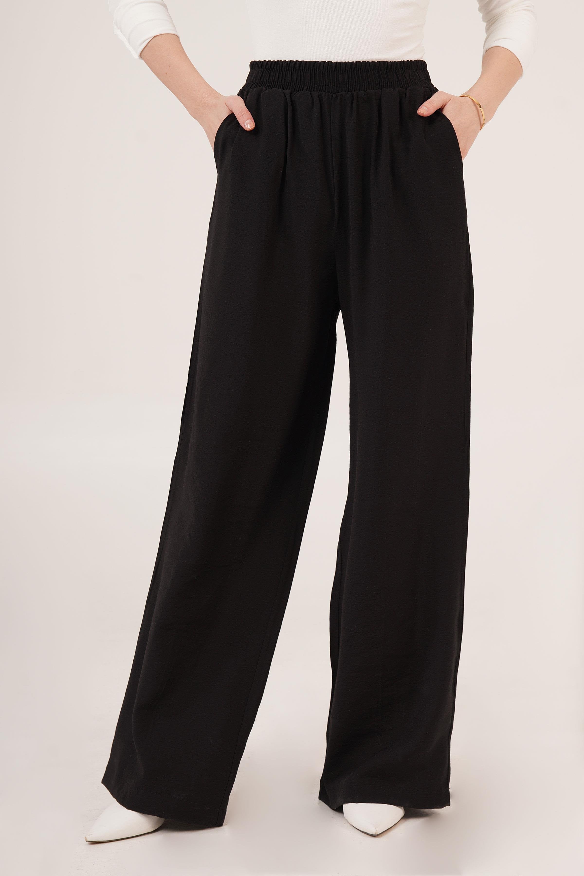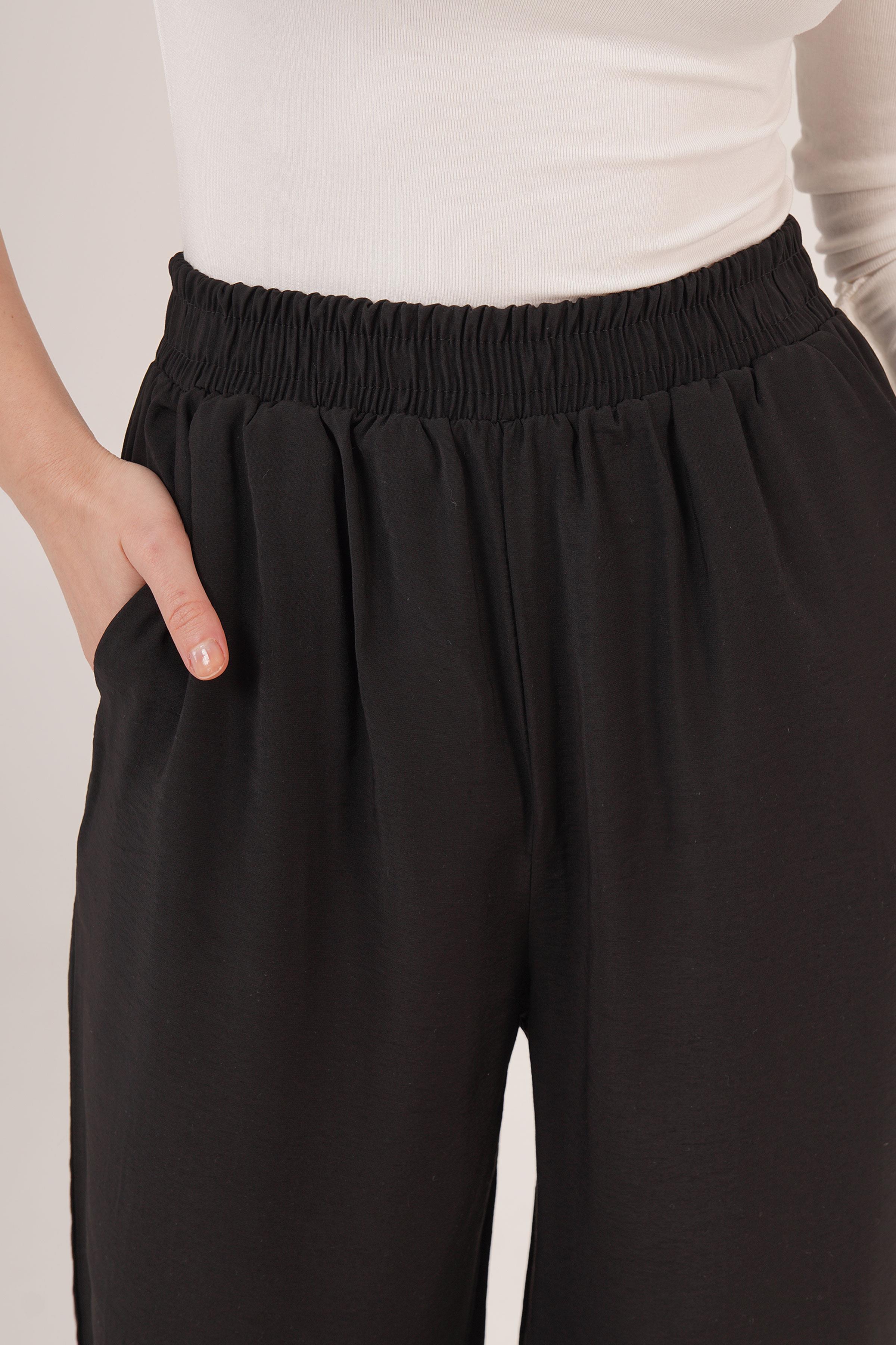 Elastic Waist Double Pocket Black Wholesale Trousers