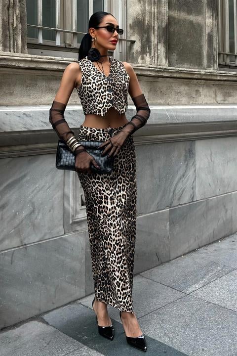 Leopar Desenli Gabardin Takım 10072
