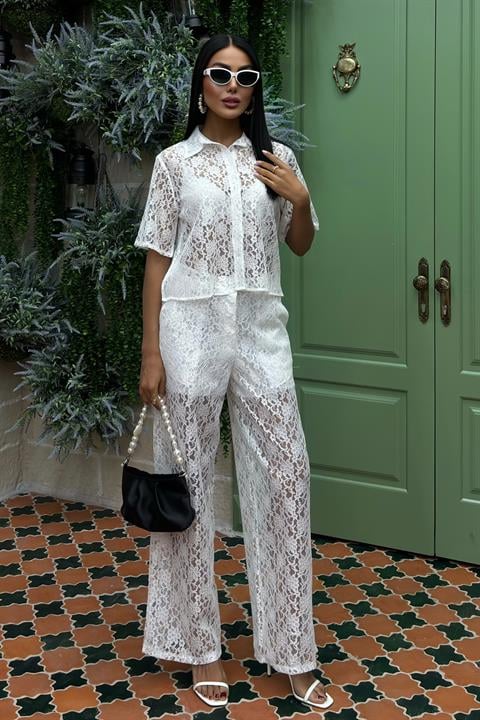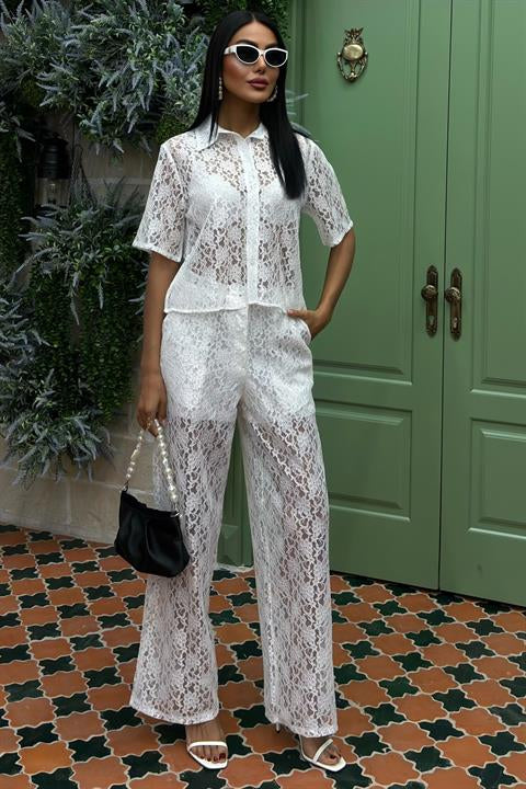 Pantolonu Astarlı Dantel İkili Takım 10119