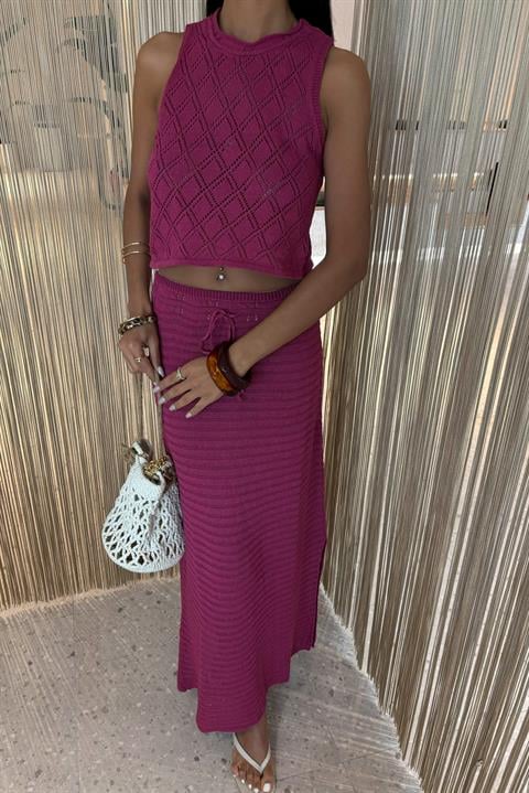 Sırt Çapraz Detay Ajurlu Triko Takım 10097