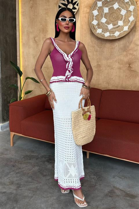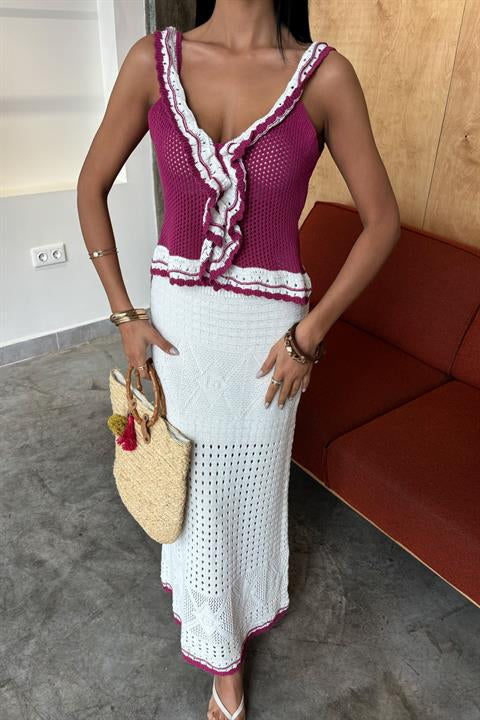 Fırfır Detaylı Uzun Etekli Triko Takım 10115