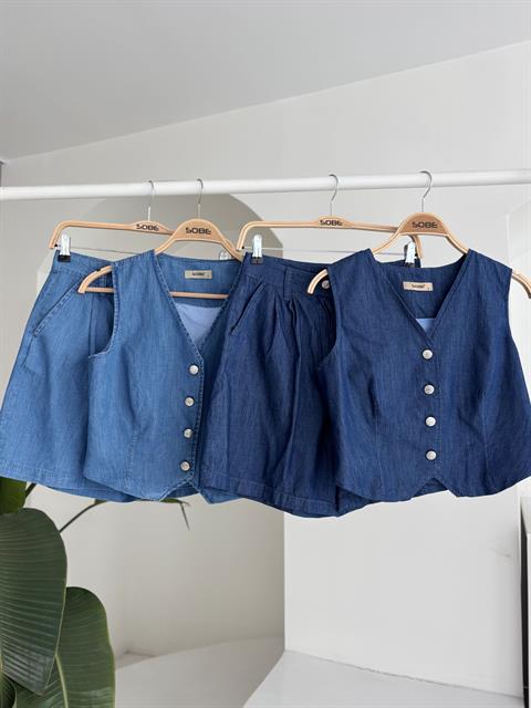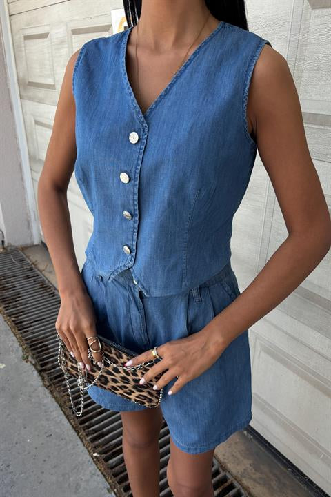 Gümüş Düğmeli Yelek ve Şort Tensel Takım 10174
