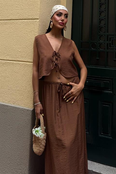 Yelek Önden Bağlamalı Uzun Etekli Takım 10192