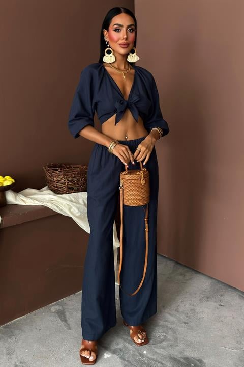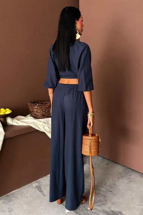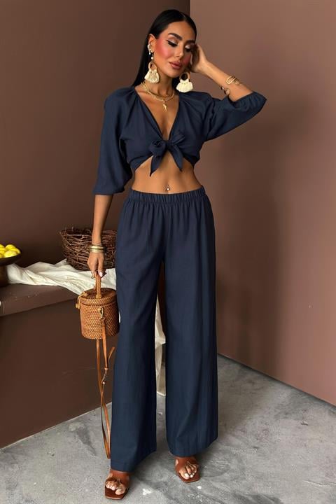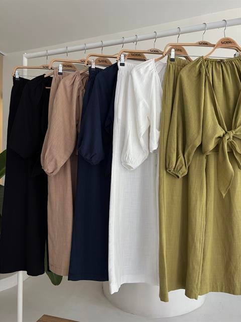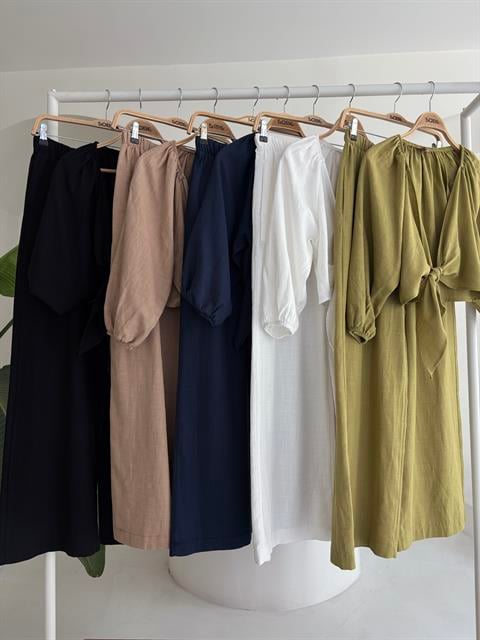 Balon Kollu ve Bağlama Detaylı Keten Takım 10182