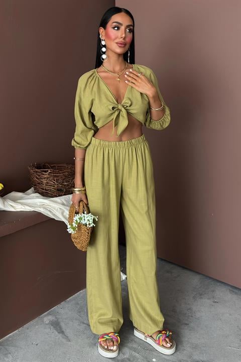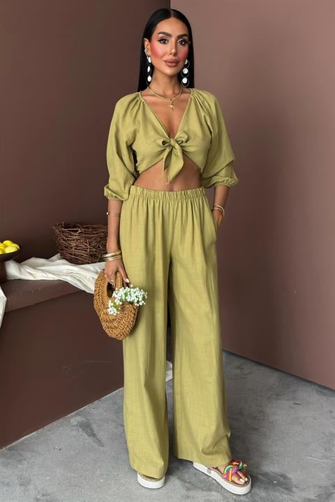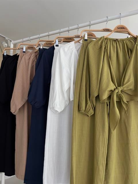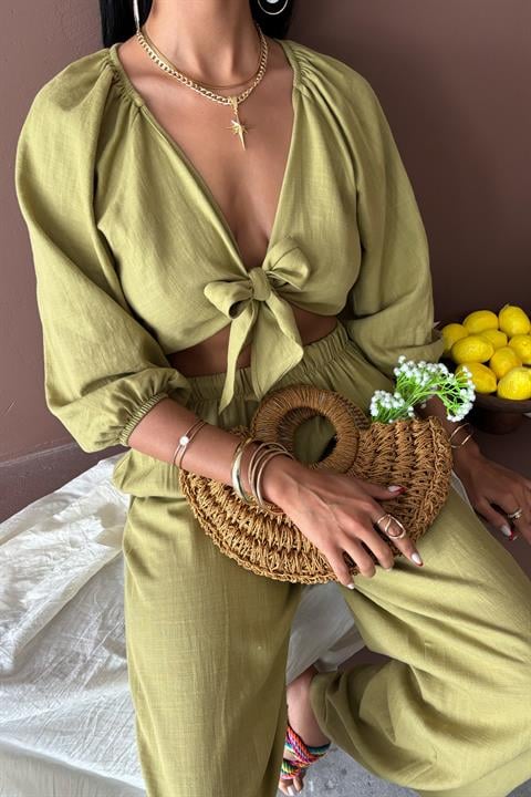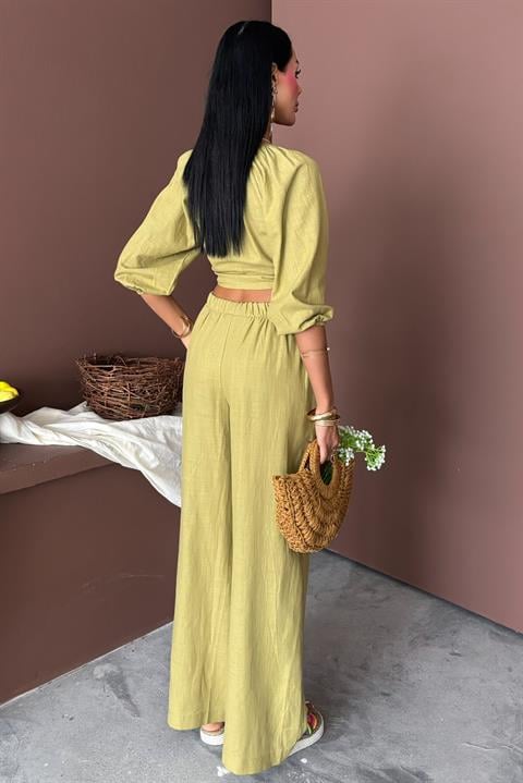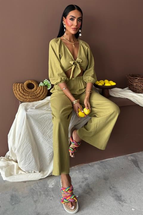 Balon Kollu ve Bağlama Detaylı Keten Takım 10182