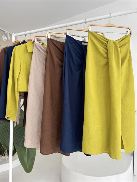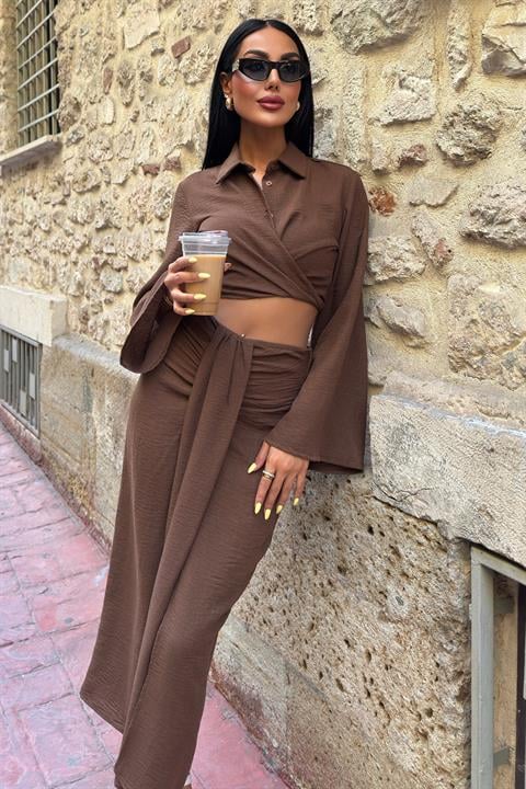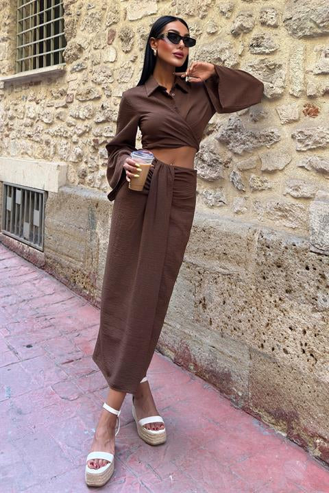 Crop Gömlekli ve Eteği Büzgülü Tasarım Takım 10195