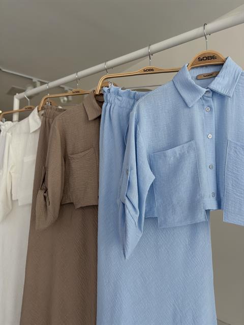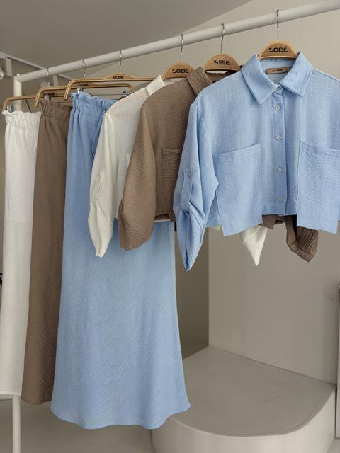 Crop Gömlekli ve Eteği Büzgülü Tasarım Takım 10201