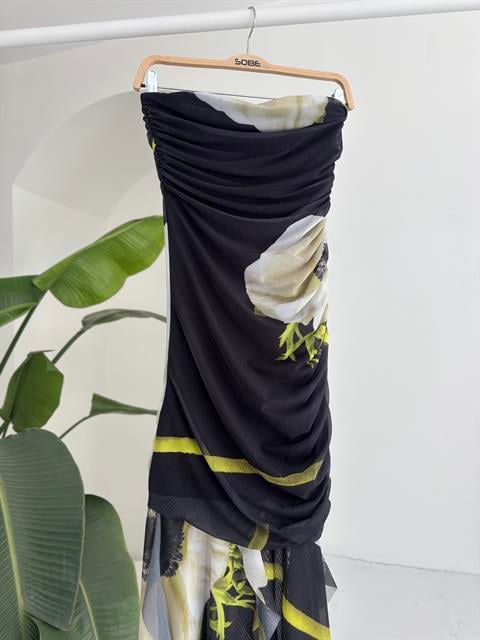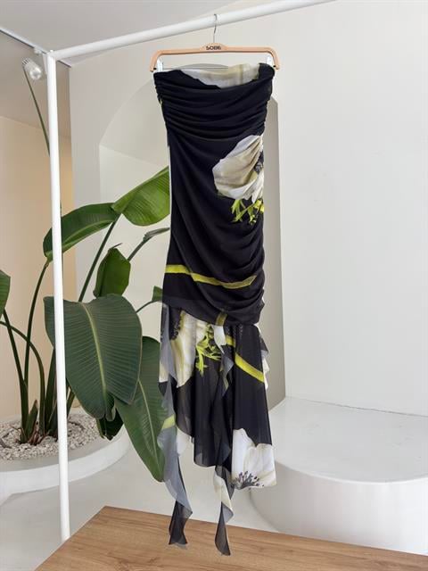 Çiçek Desenli Parçalı Tül Elbise 2622-08