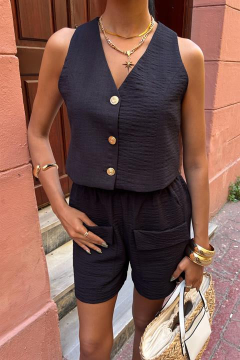 Mini Yelekli Şortlu Keten Takım 10176-08
