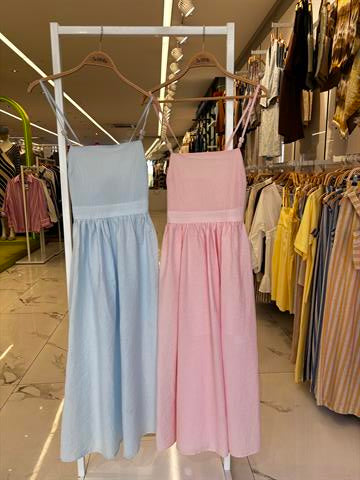 Sırtı Çapraz İpli Boncuk Detaylı Elbise 2902-08