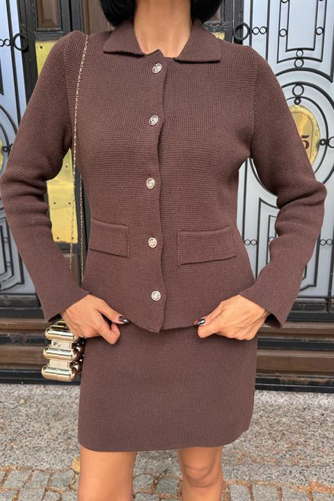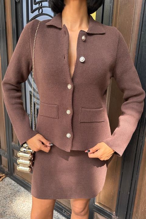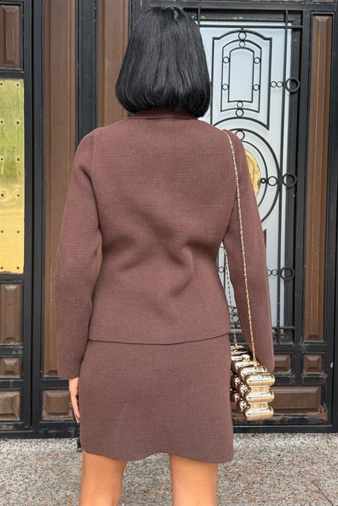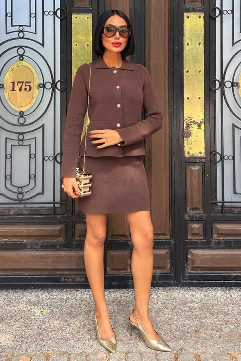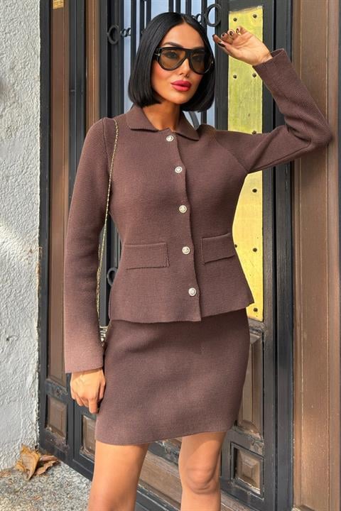 Gömlek Yaka ve Cep Detaylı Çelik Triko Takım 10215