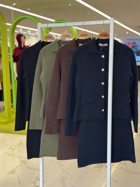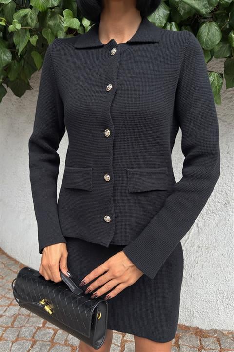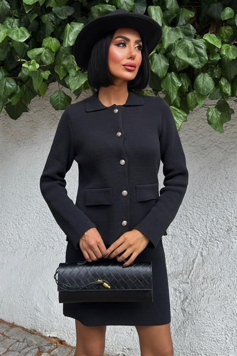 Gömlek Yaka ve Cep Detaylı Çelik Triko Takım 10215