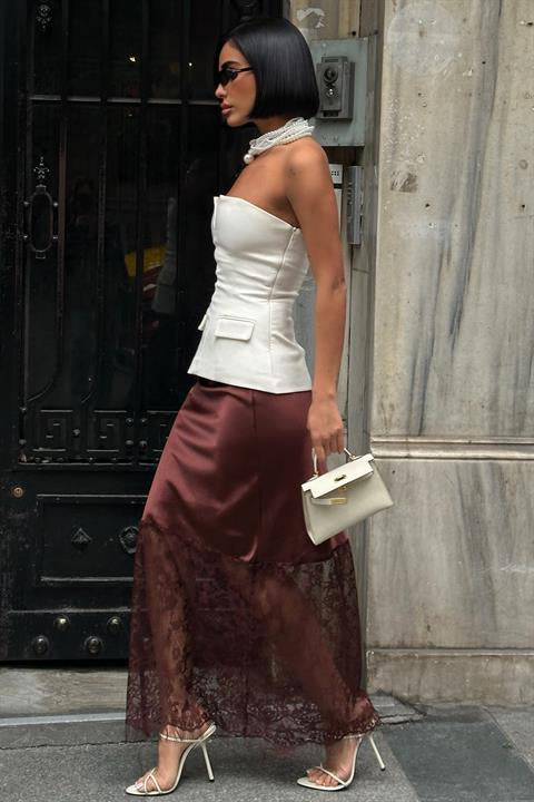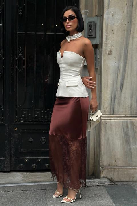 Dantel Detaylı Saten Uzun Etek – Lastikli Bel 4057-08