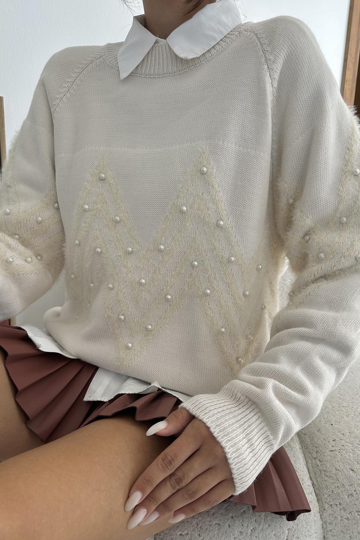 Toptan Taş Zikzak Boncuklu Triko Kazak