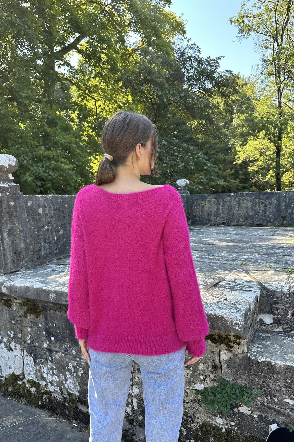 Toptan Fuşya Baklava Desenli Triko Kazak