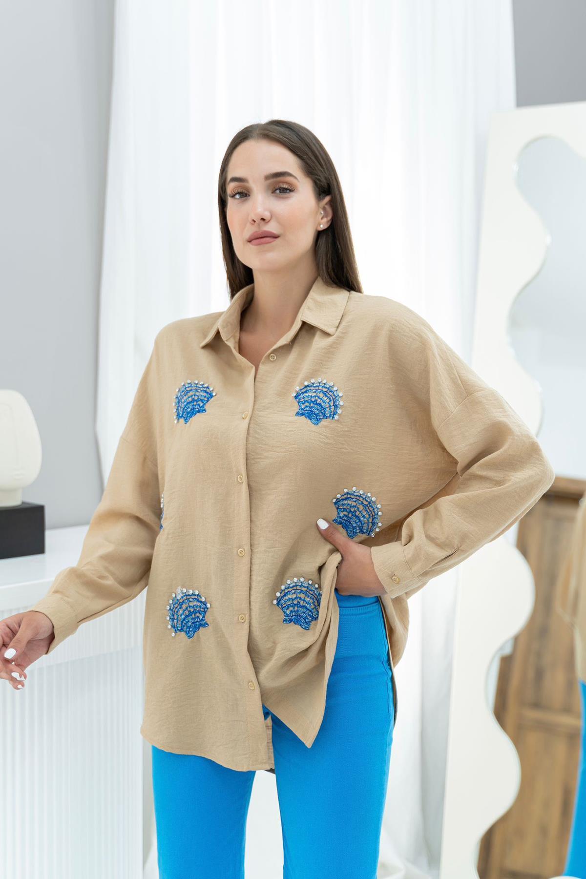 Toptan Vizon Deniz Kabuk Desenli Gömlek