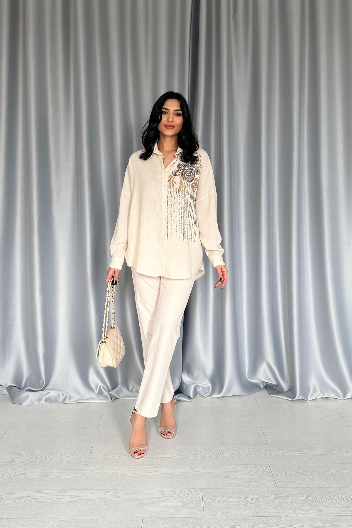 Toptan Krem Pulpayet Nakışlı Bedensiz Gömlek