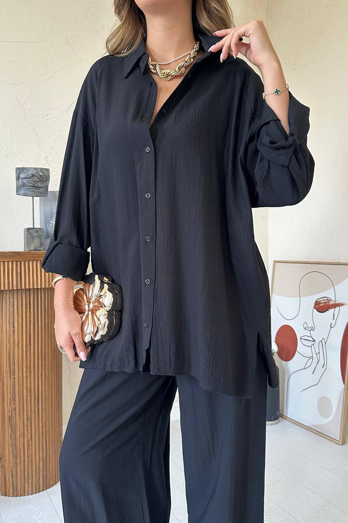 Toptan Siyah Alice Gömlek Ve Bol Kesim Pantolon Takım