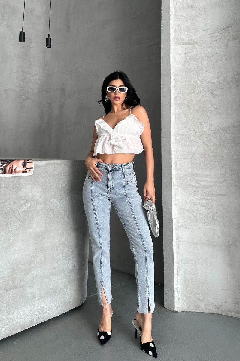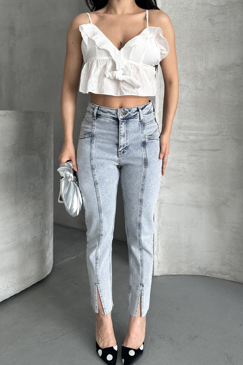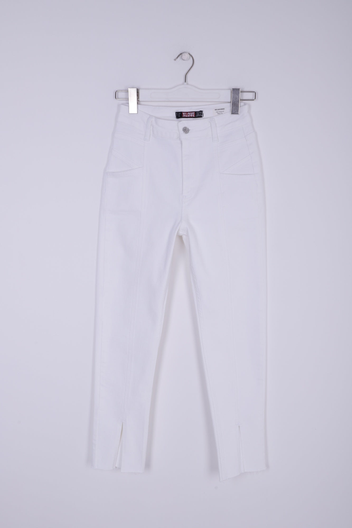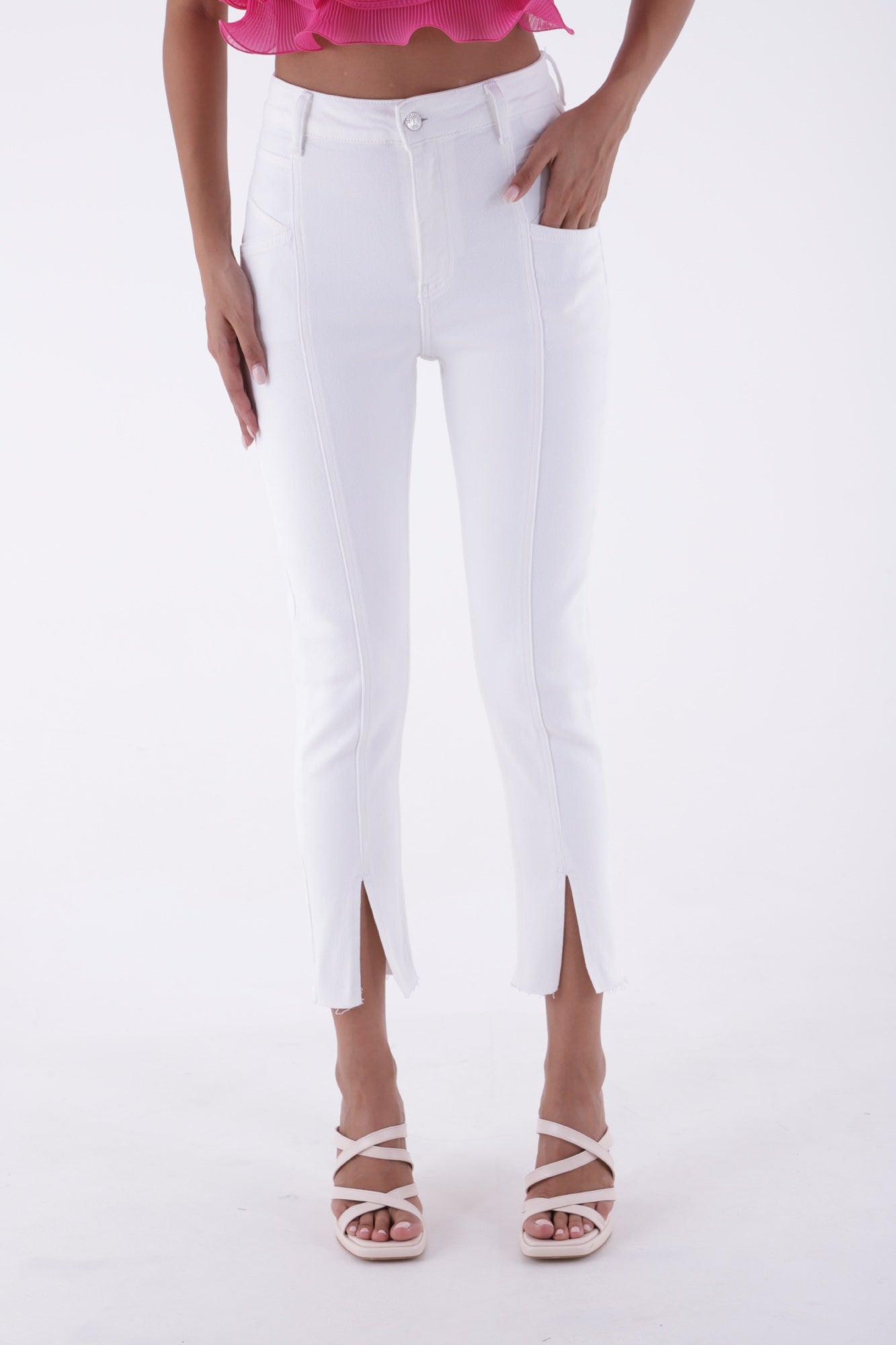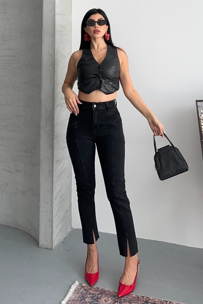 Parçalı Önü Yırtmaçlı Dikişsiz Paça Pantolon